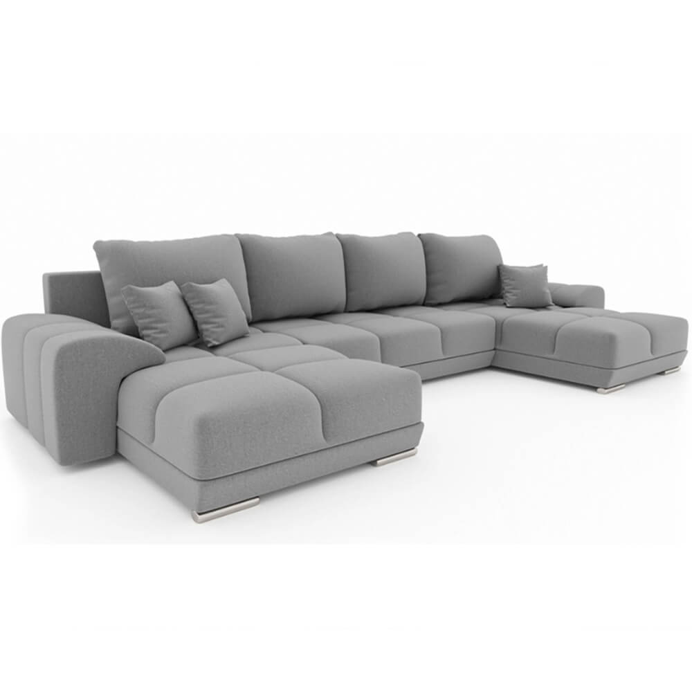 Duży narożnik U-kształtny NAOMI 2 szary z funkcją spania oraz pojemnikiem na pościel nowoczesny