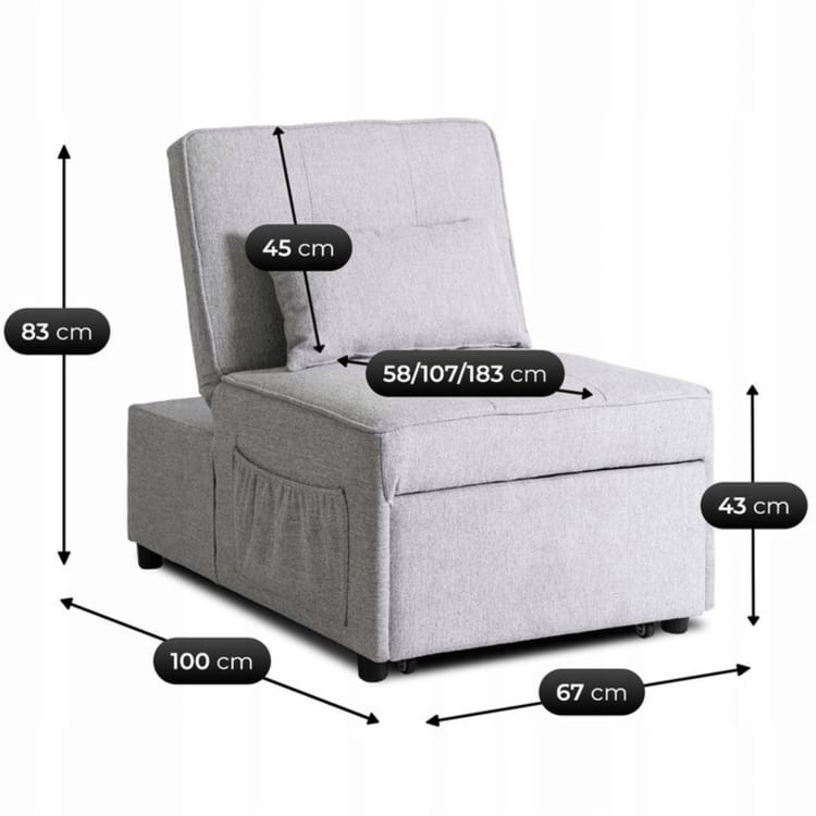 Wielofunkcyjność – fotel, szezlong i łóżko w jednym meblu.