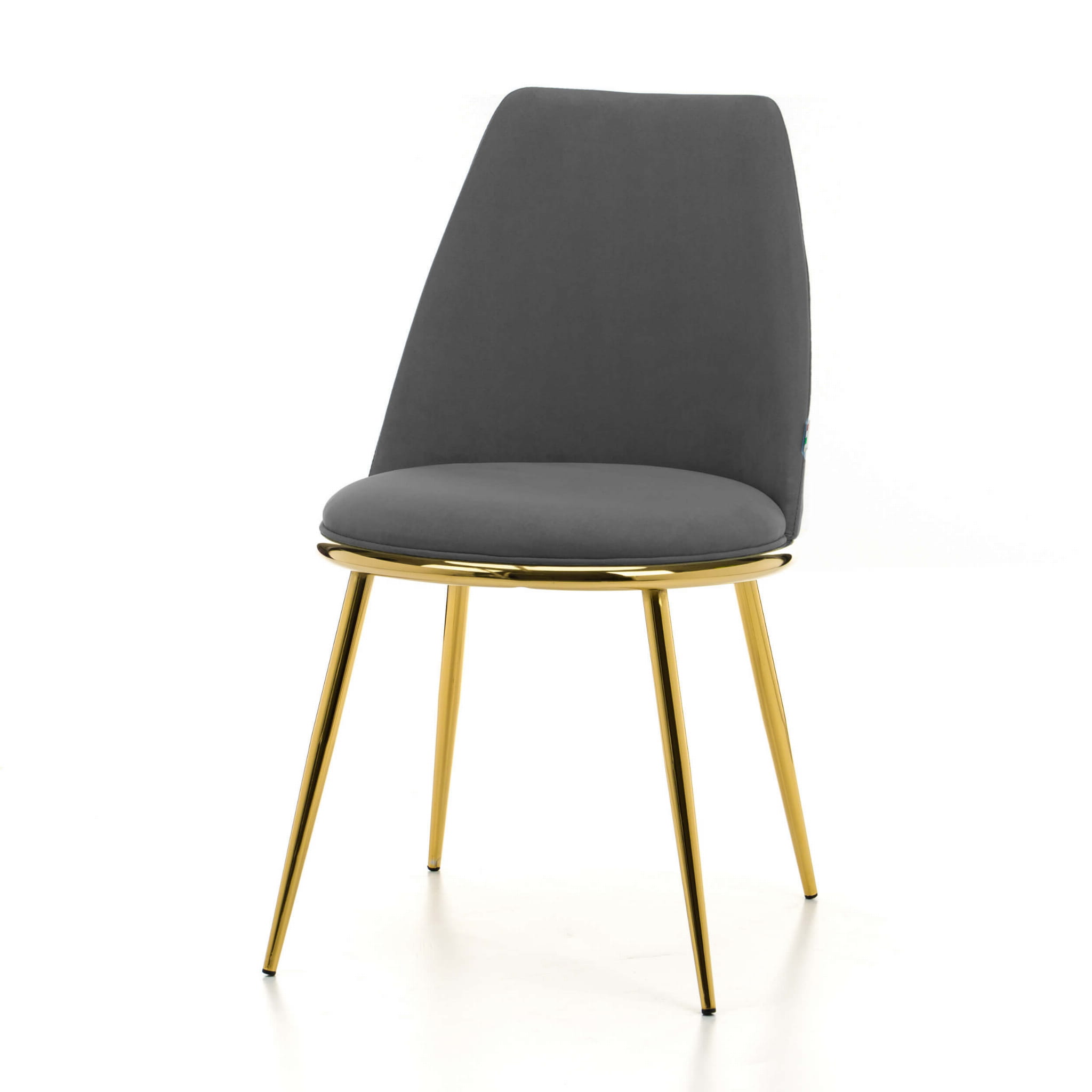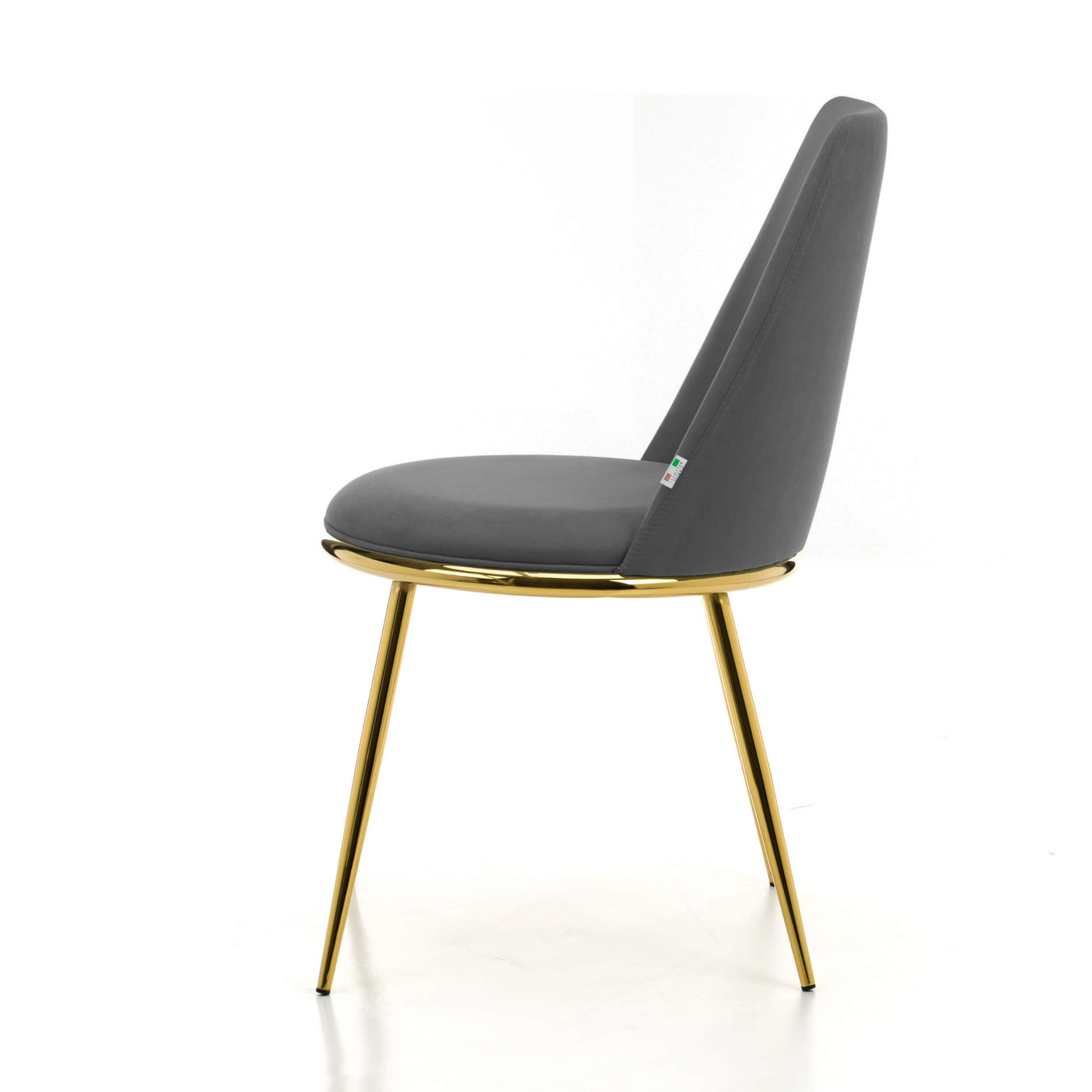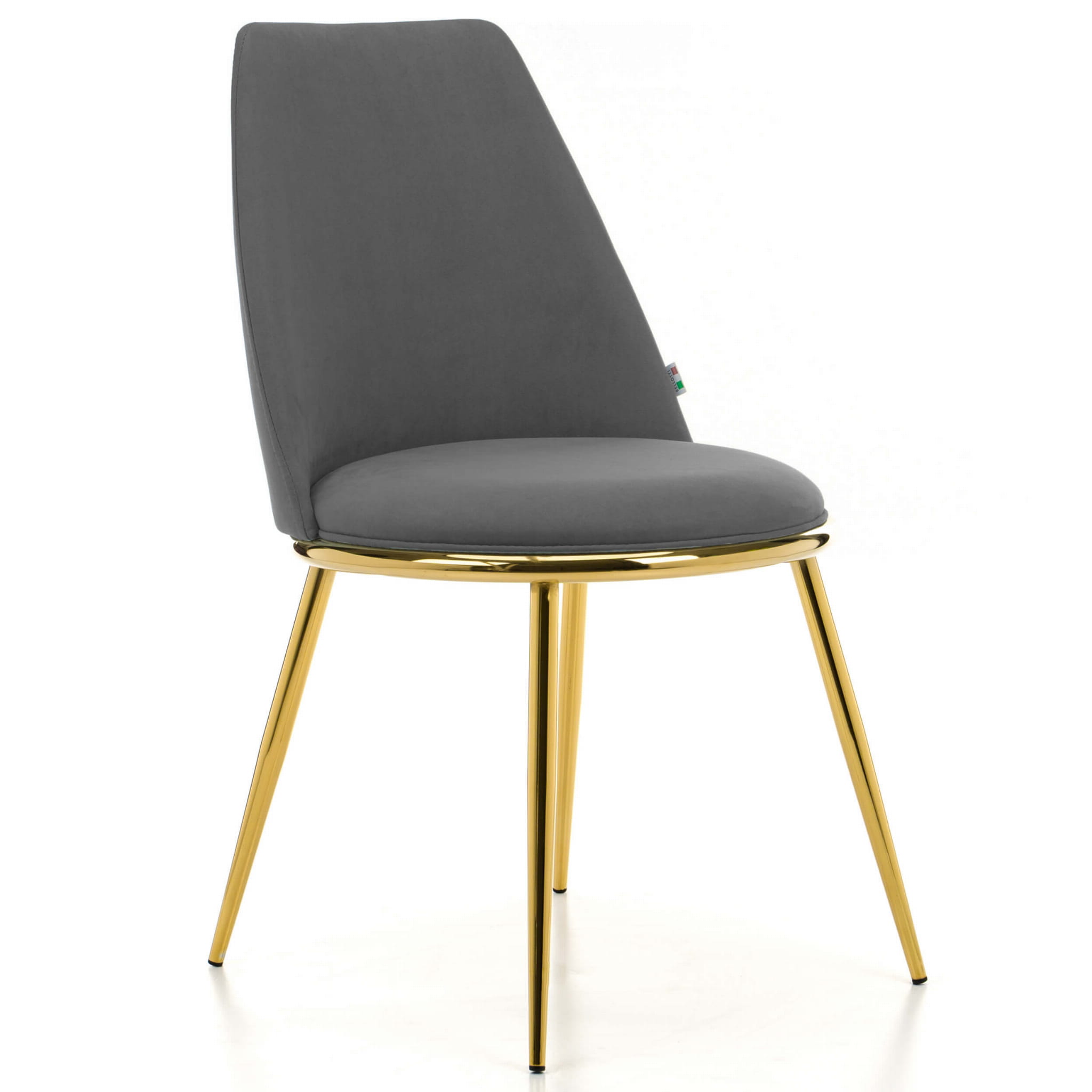 Krzesło tapicerowane do jadalni TANARO szary welur na złotych, metalowych nogach