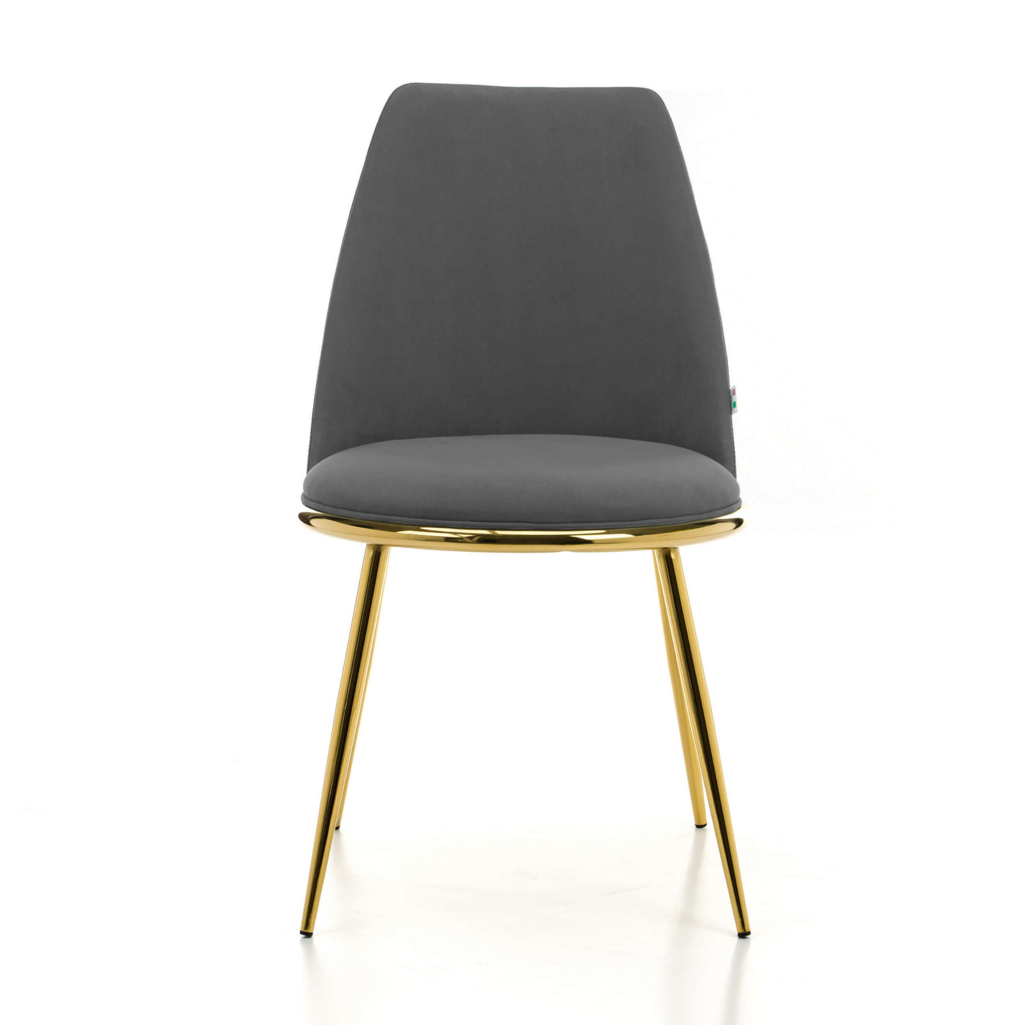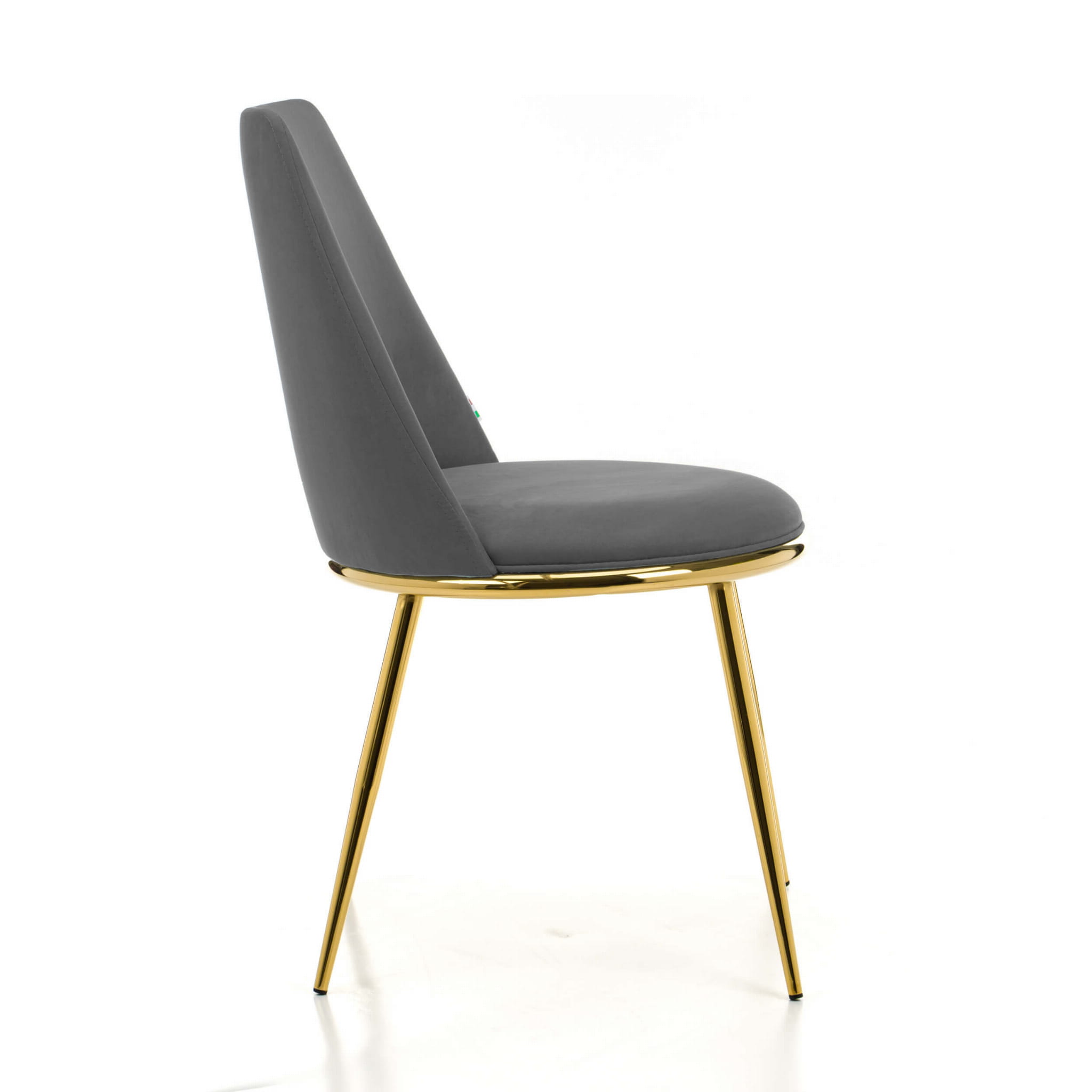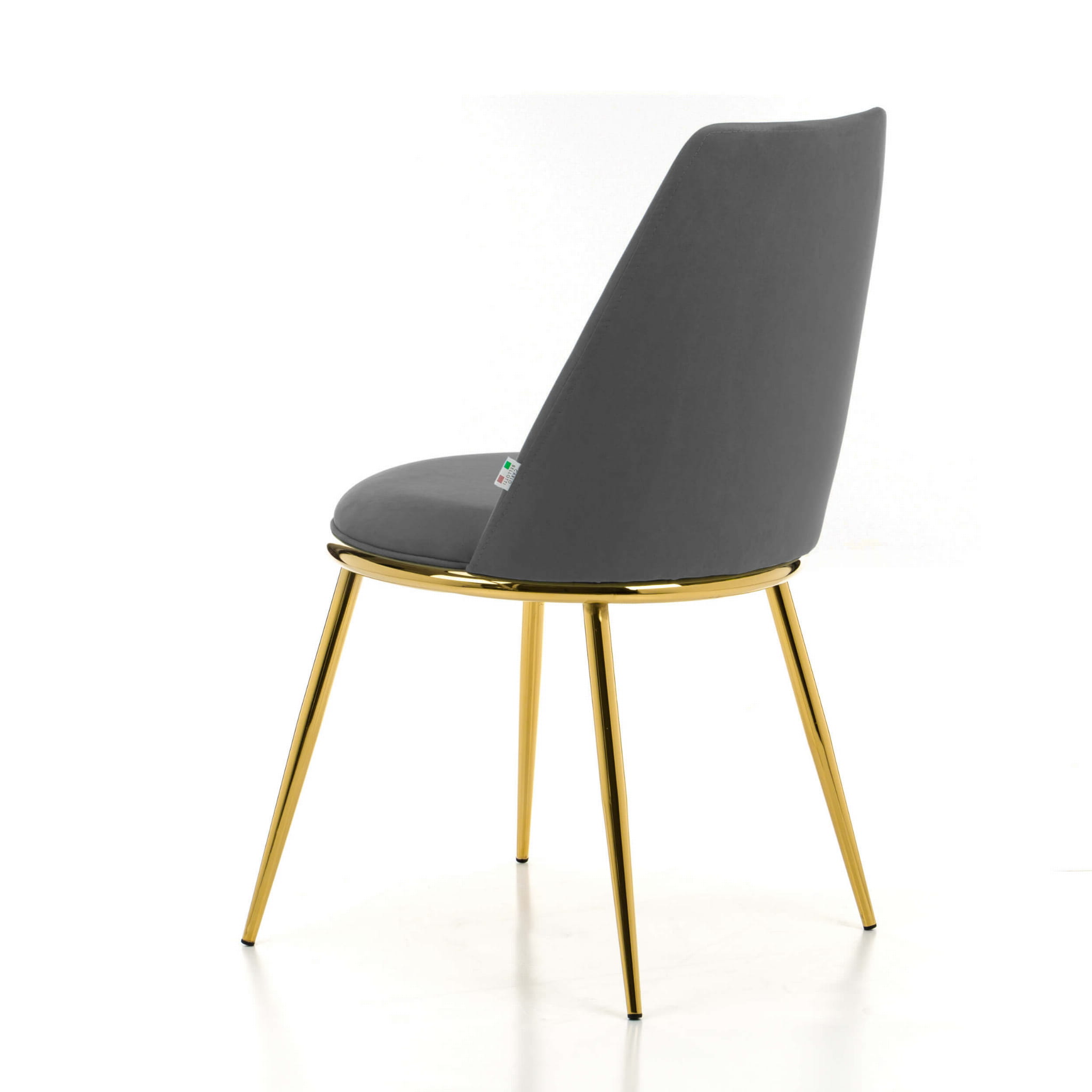 Krzesło tapicerowane do jadalni TANARO szary welur na złotych, metalowych nogach
