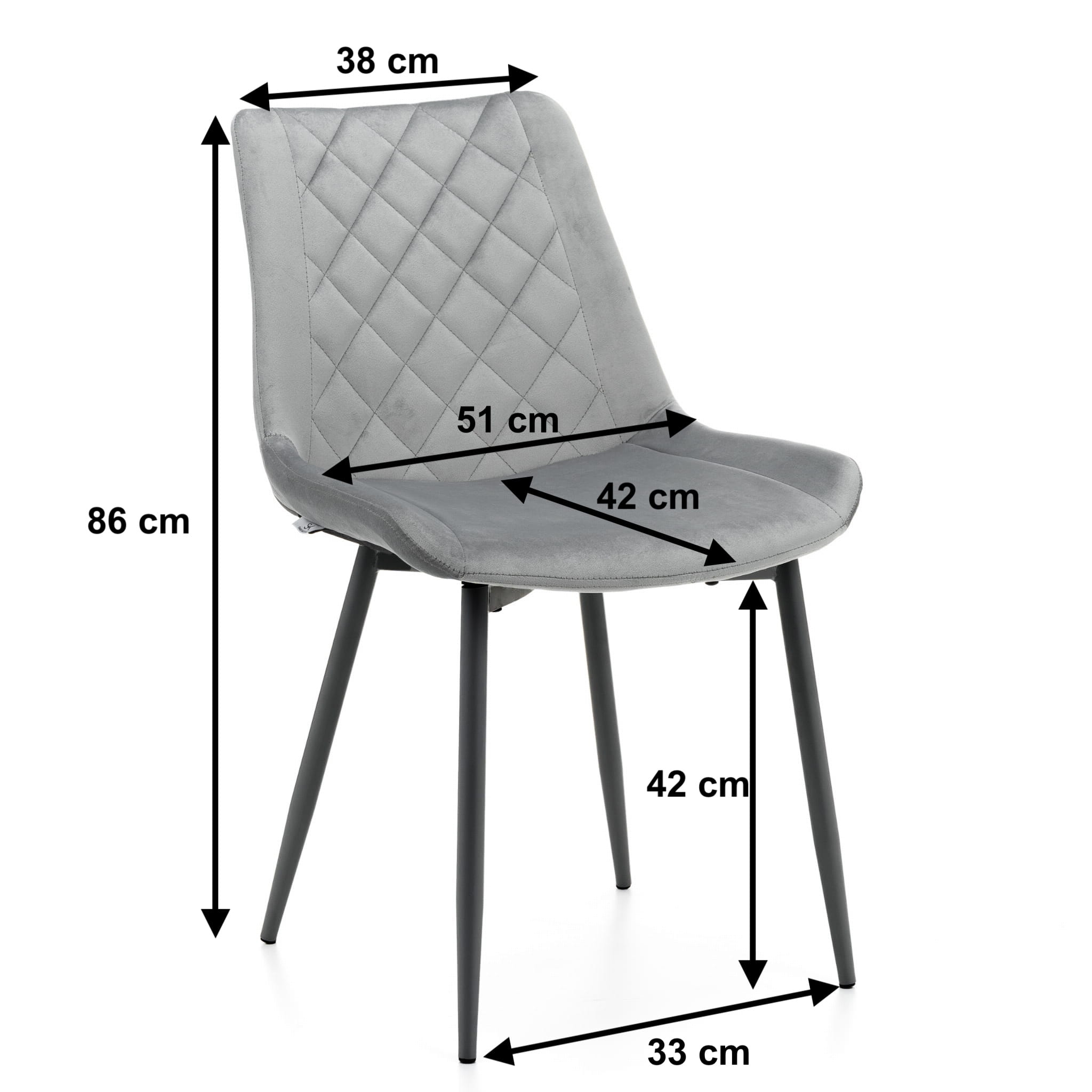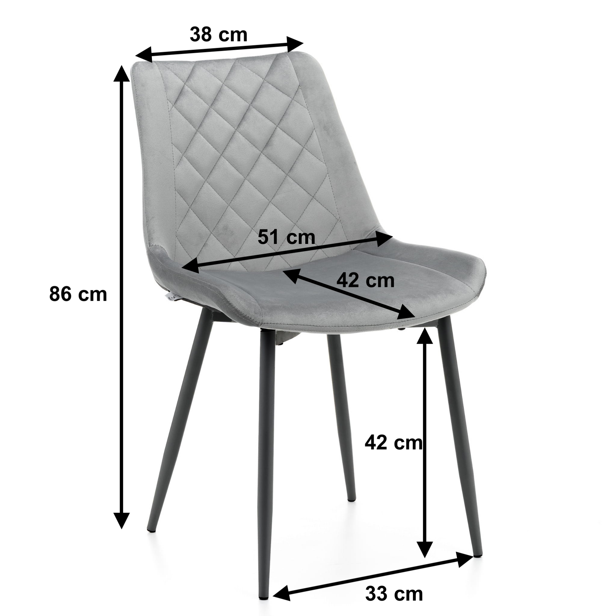 Siedzisko oraz oparcie zostało obite wysokiej jakości tkaniną welurową, która oprócz łatwości w czyszczeniu, cechuje się długą żywotnością i pozostaje piękna przez długi czas, mimo wpływu na nią różnych czynników zewnętrznych. Metalowe nogi, na których stoi ten model, również zostały pomalowane w czarnym kolorze, dzięki czemu całość wygląda naprawdę smukło i prestiżowo.