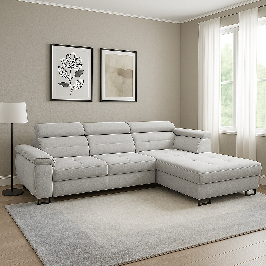 Narożnik dostępny jest w wersji lewostronnej lub prawostronnej – przy zakupie należy określić stronę, która będzie najlepiej pasować do Twojego wnętrza.