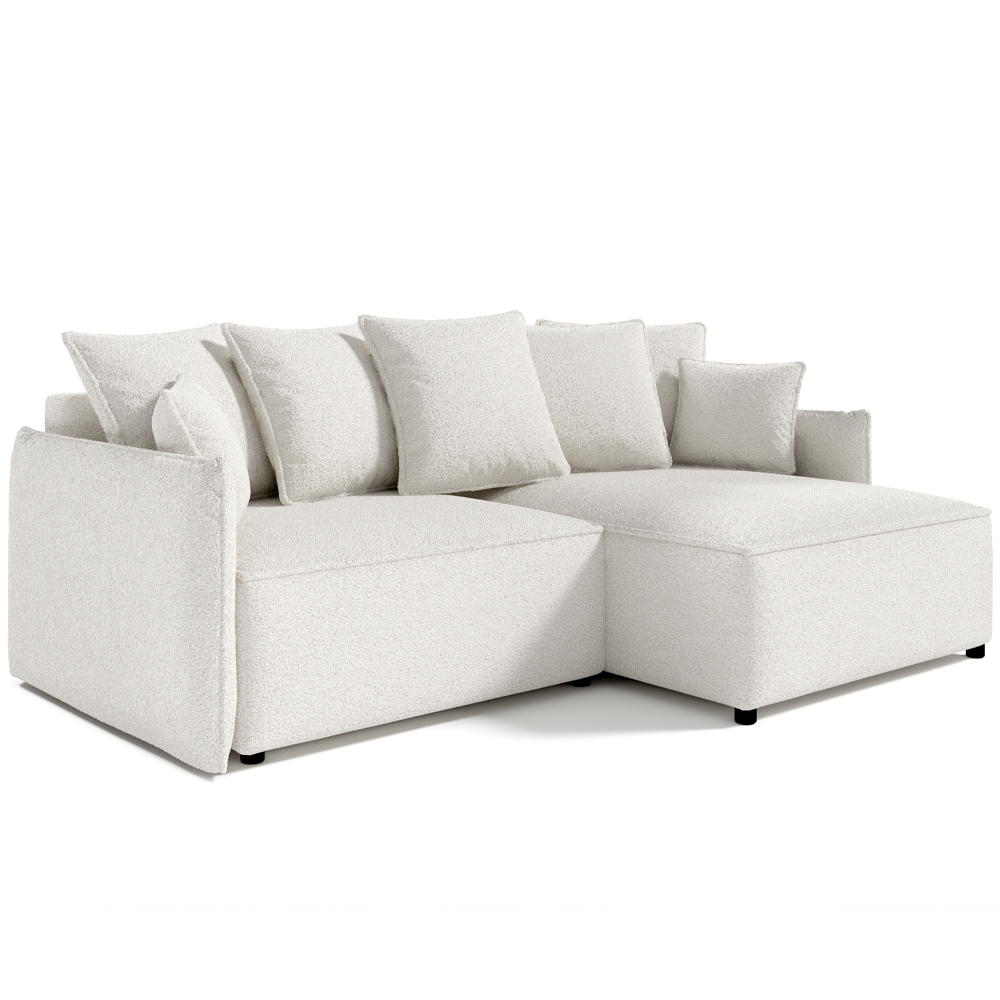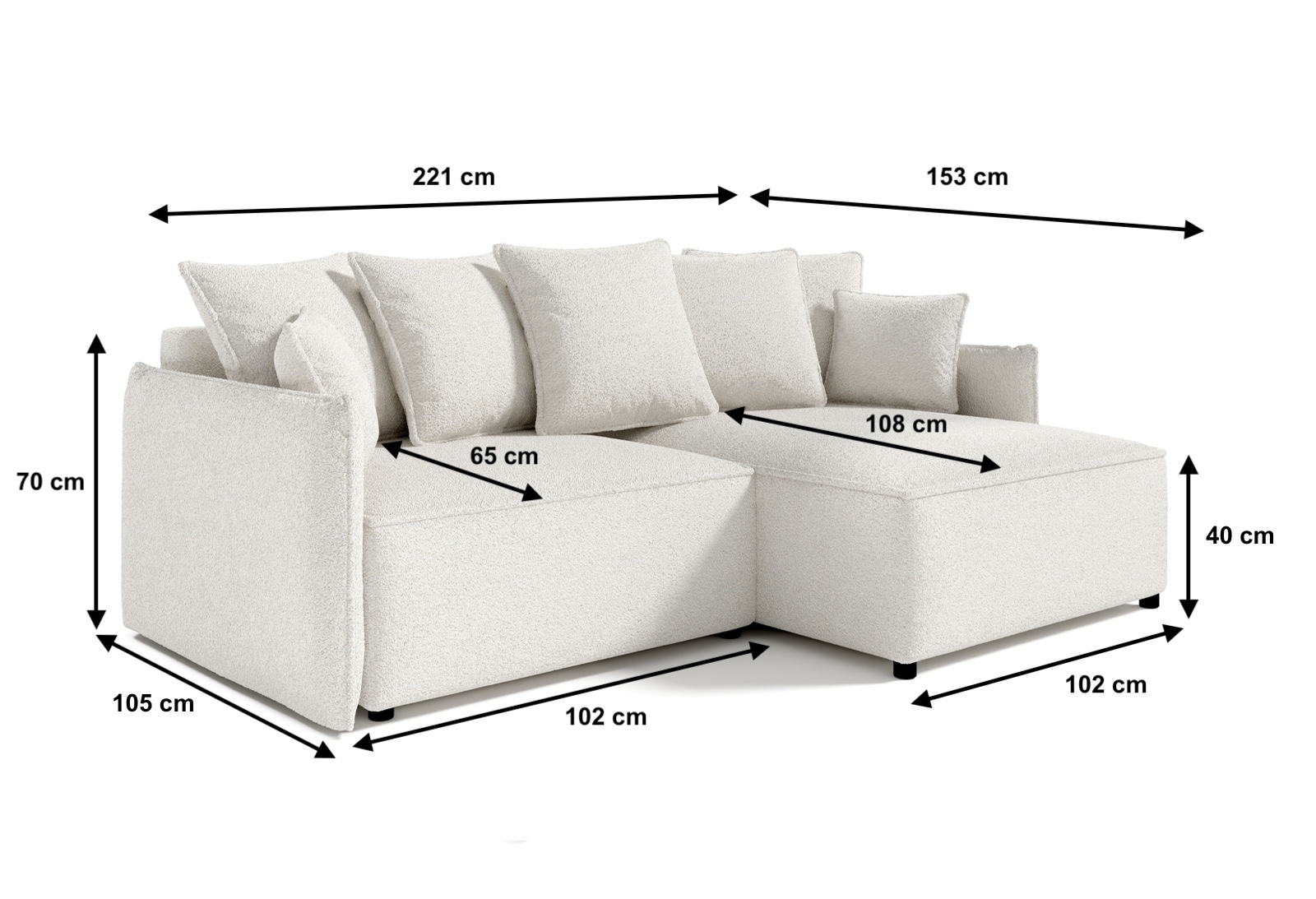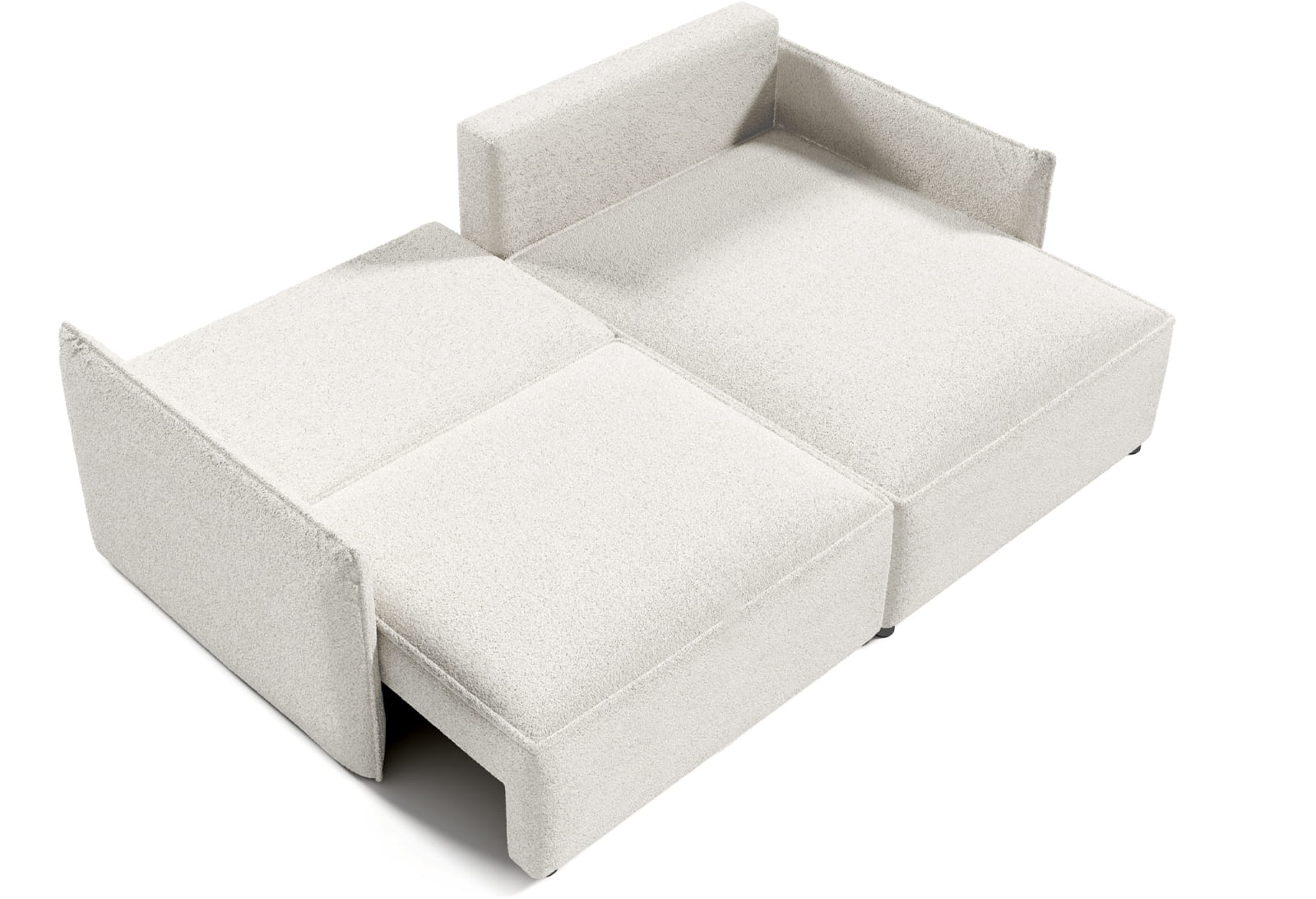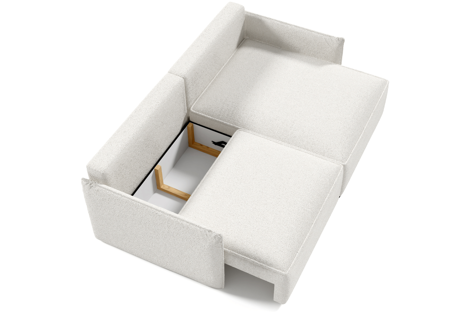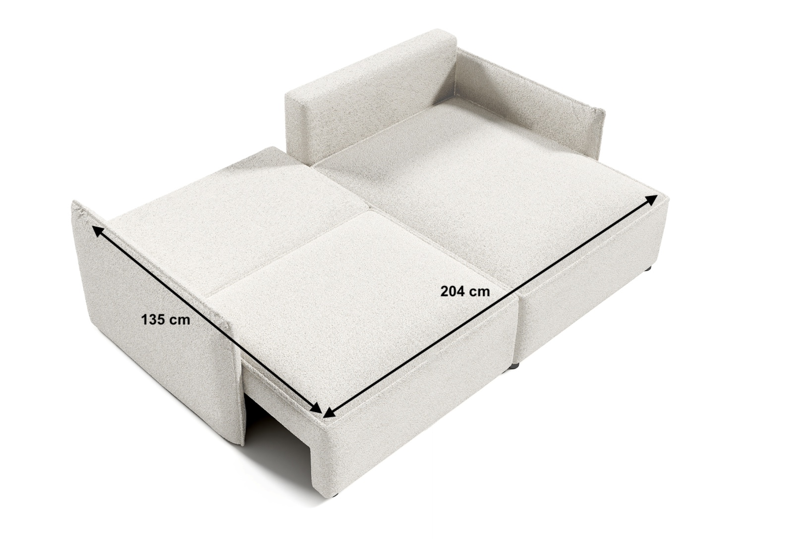 Narożnik L-kształtny BELLANTE beżowa tkanina boucle z funkcją spania oraz pojemnikiem na pościel