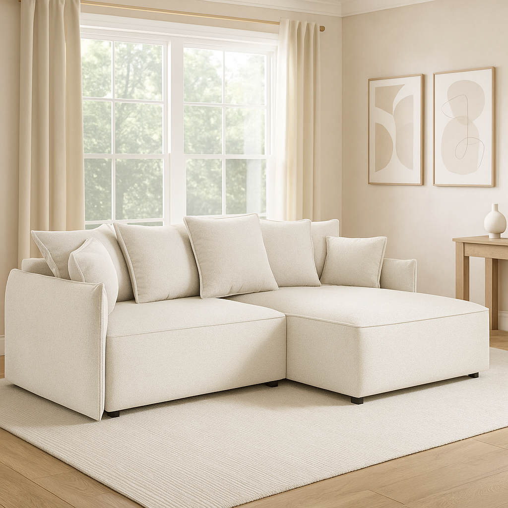 Wybierz narożnik Bellante w tkaninie boucle, aby dodać swojemu domowi element luksusu i niezrównanego komfortu, który zachwyci każdego, kto na nim usiądzie.