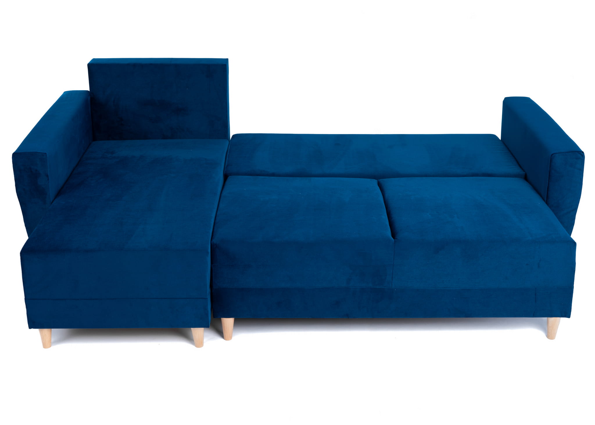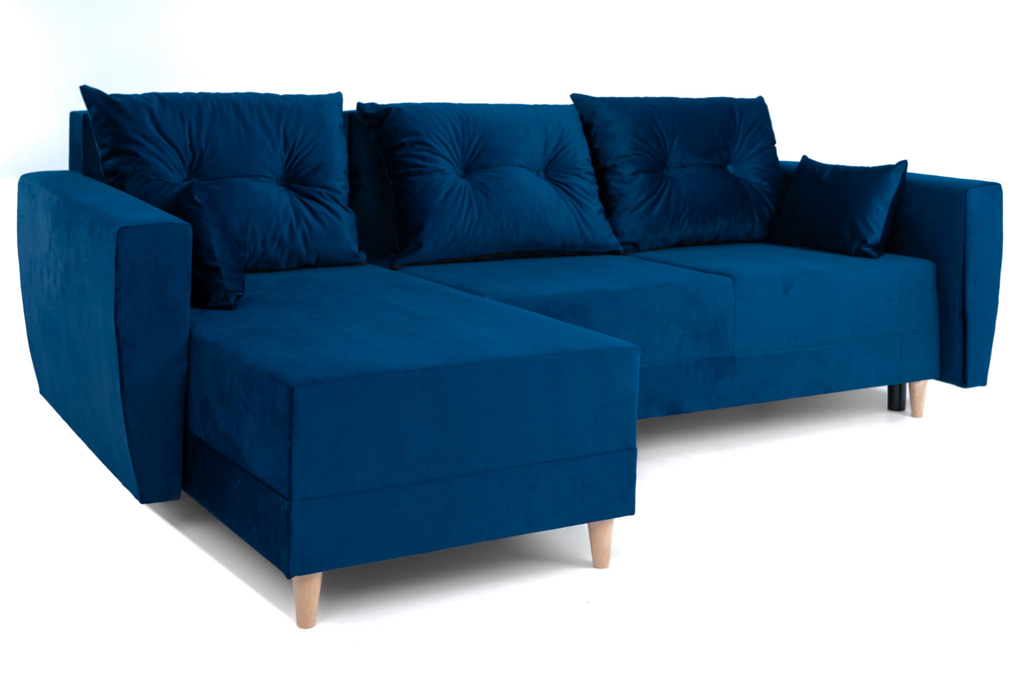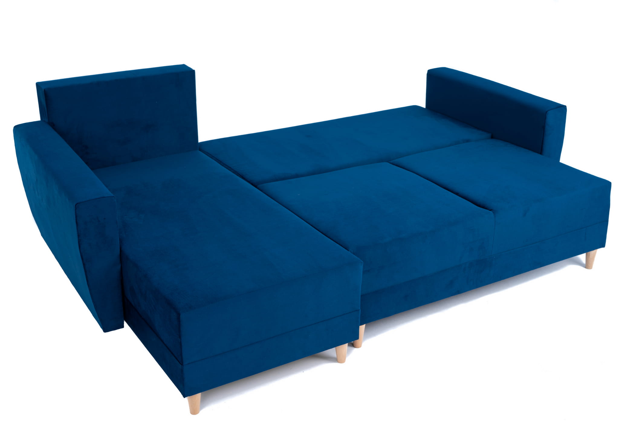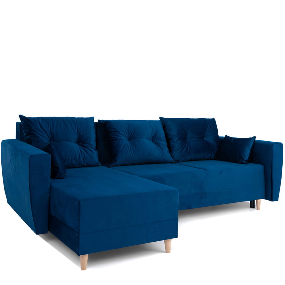 Narożnik L-kształtny IVAN niebieski z funkcją spania oraz pojemnikiem na pościel