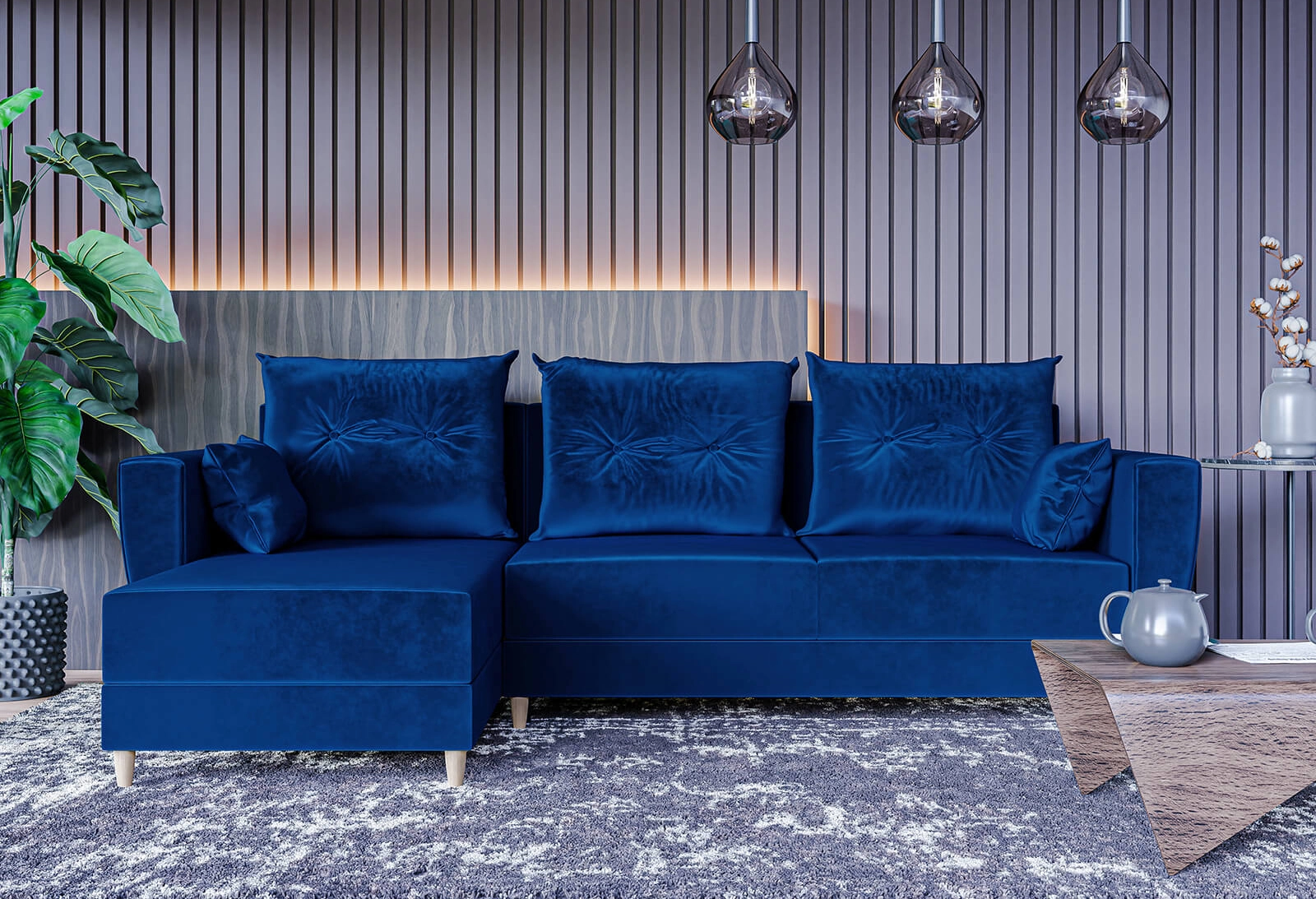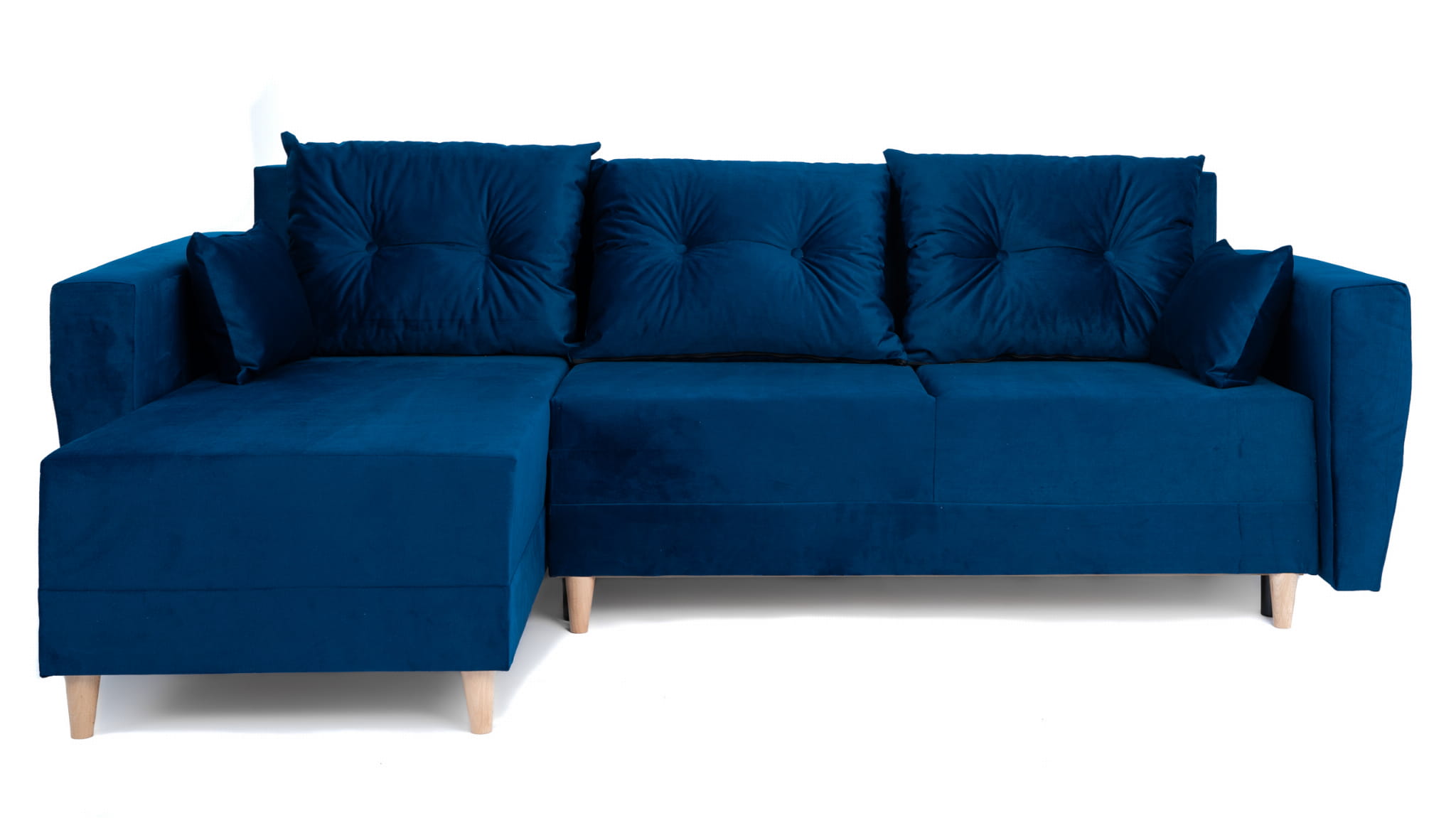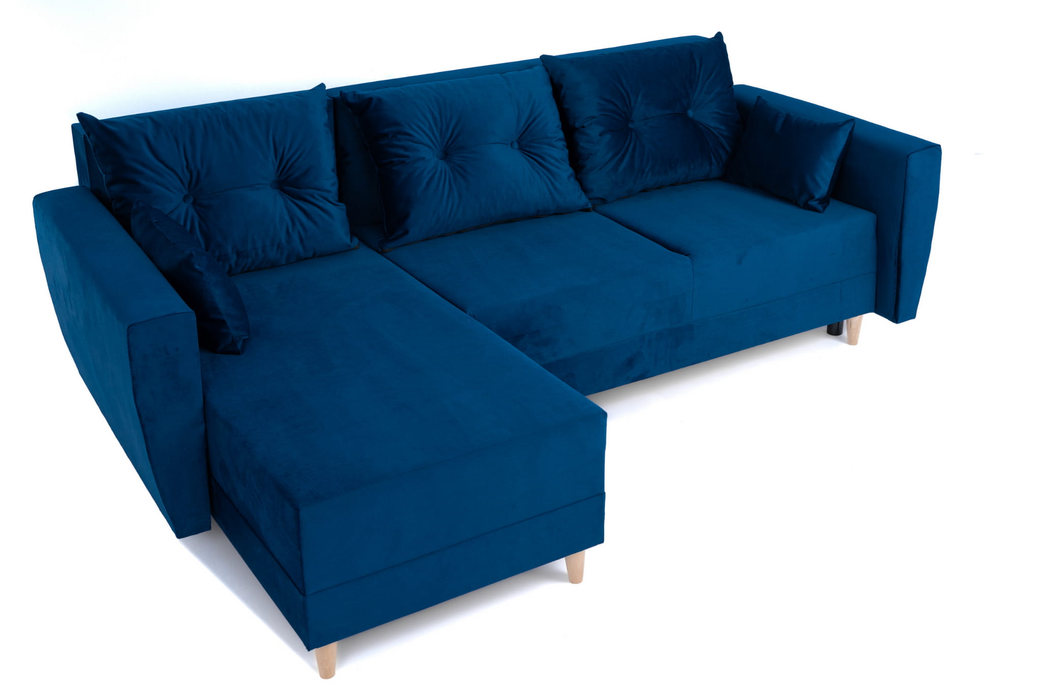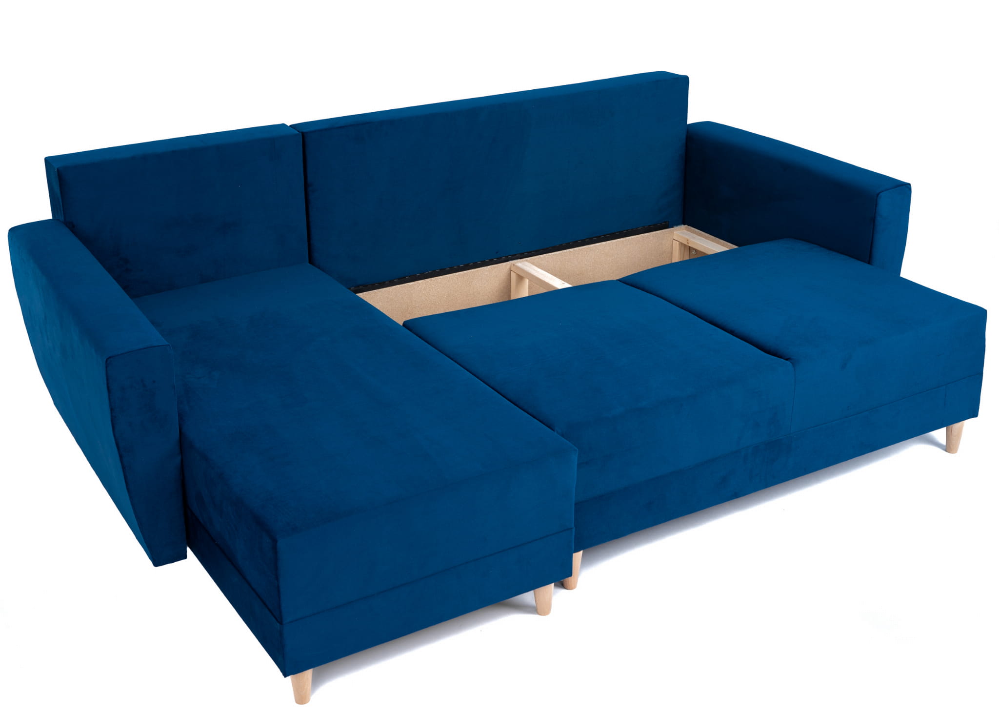 Narożnik L-kształtny IVAN niebieski z funkcją spania oraz pojemnikiem na pościel