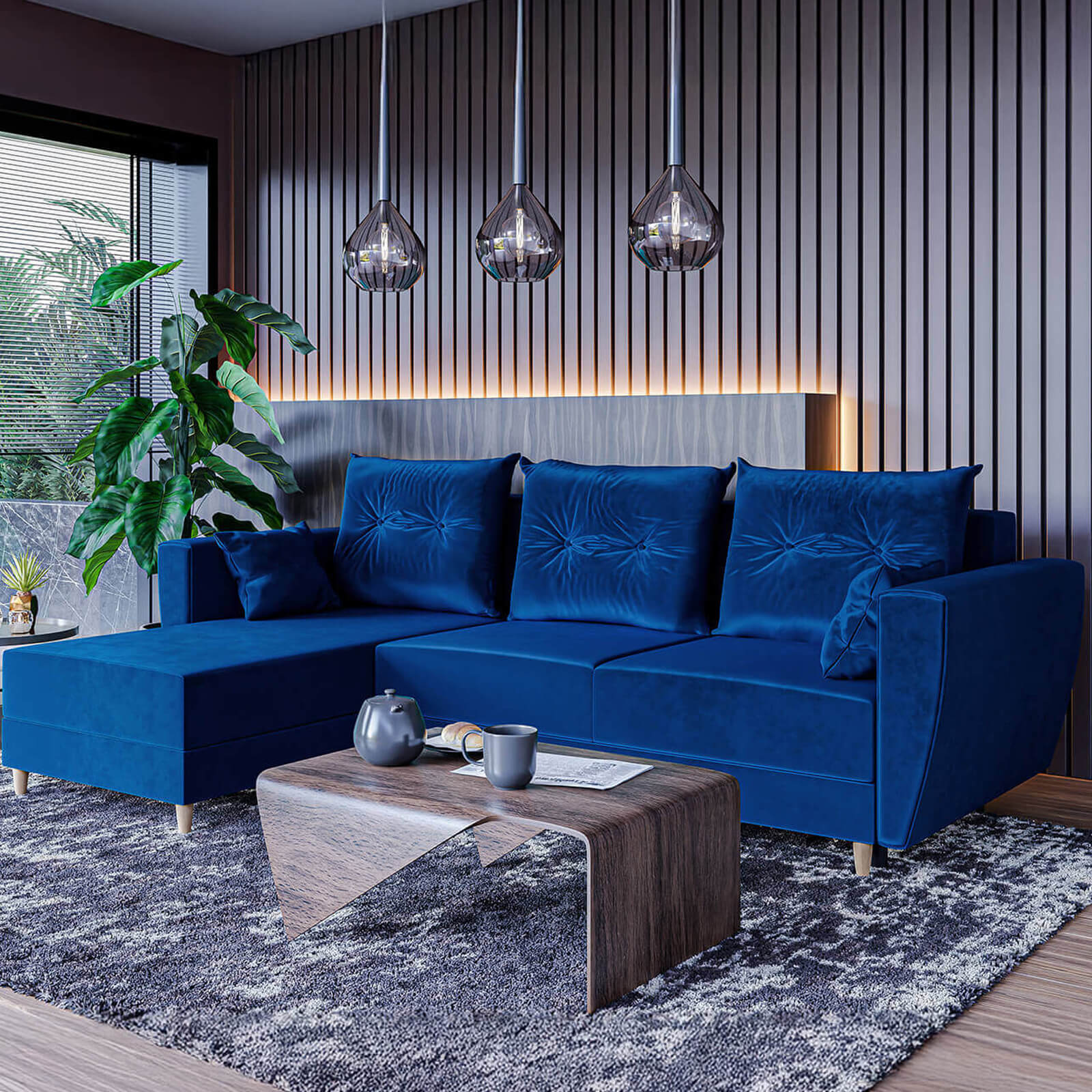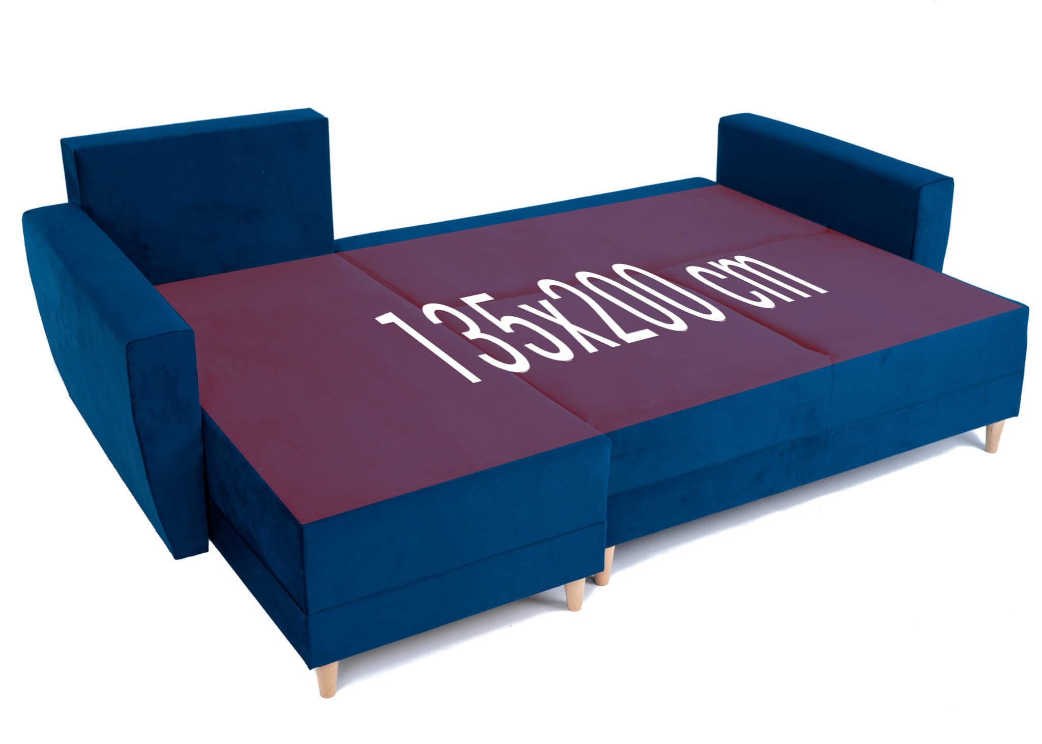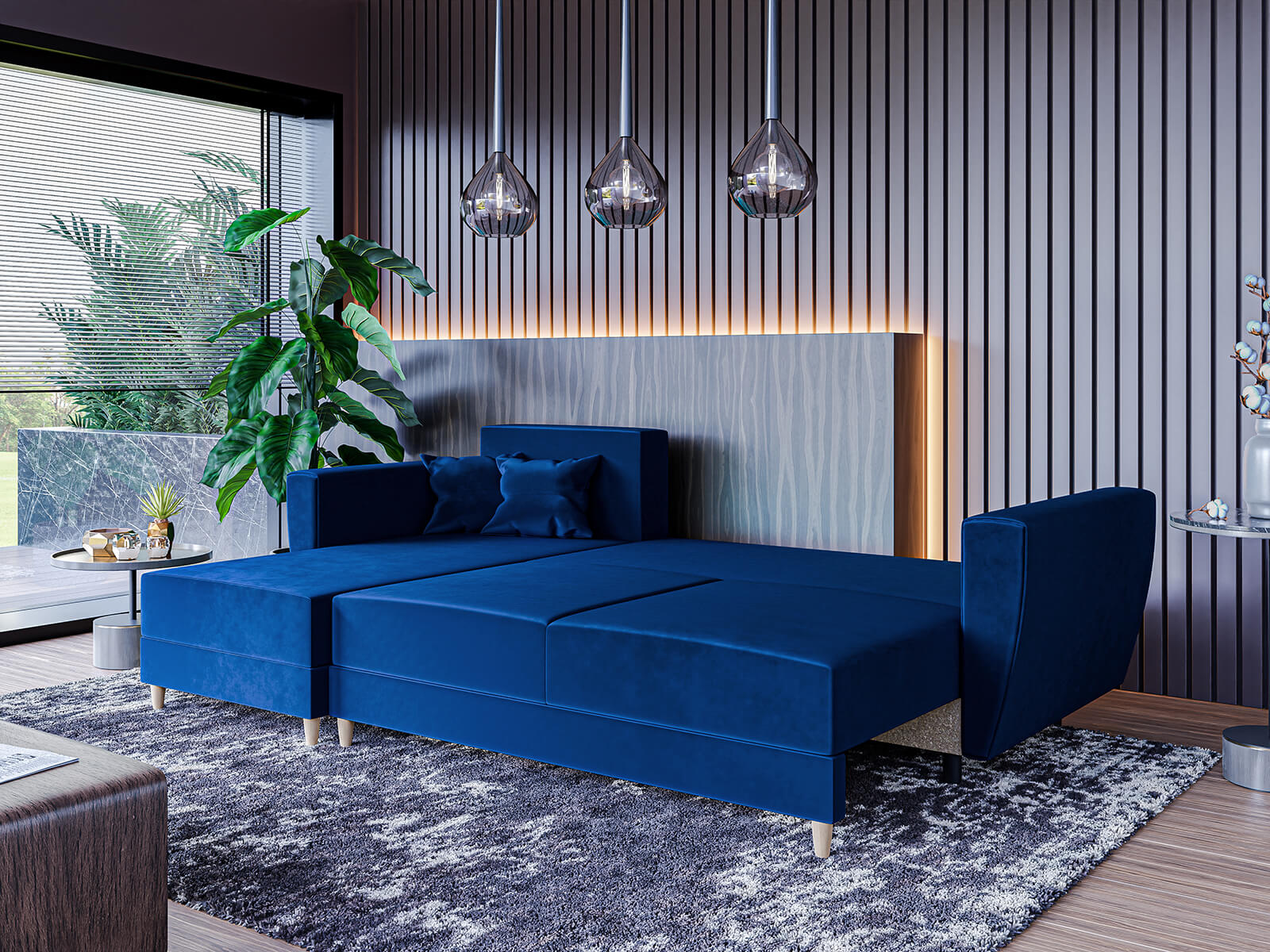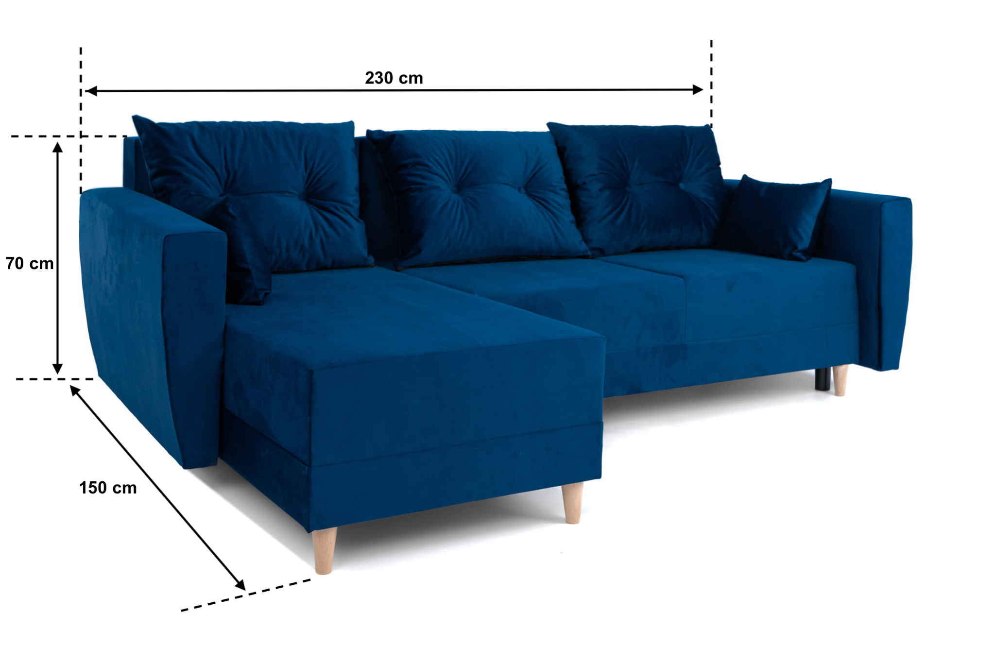 Narożnik L-kształtny IVAN niebieski z funkcją spania oraz pojemnikiem na pościel