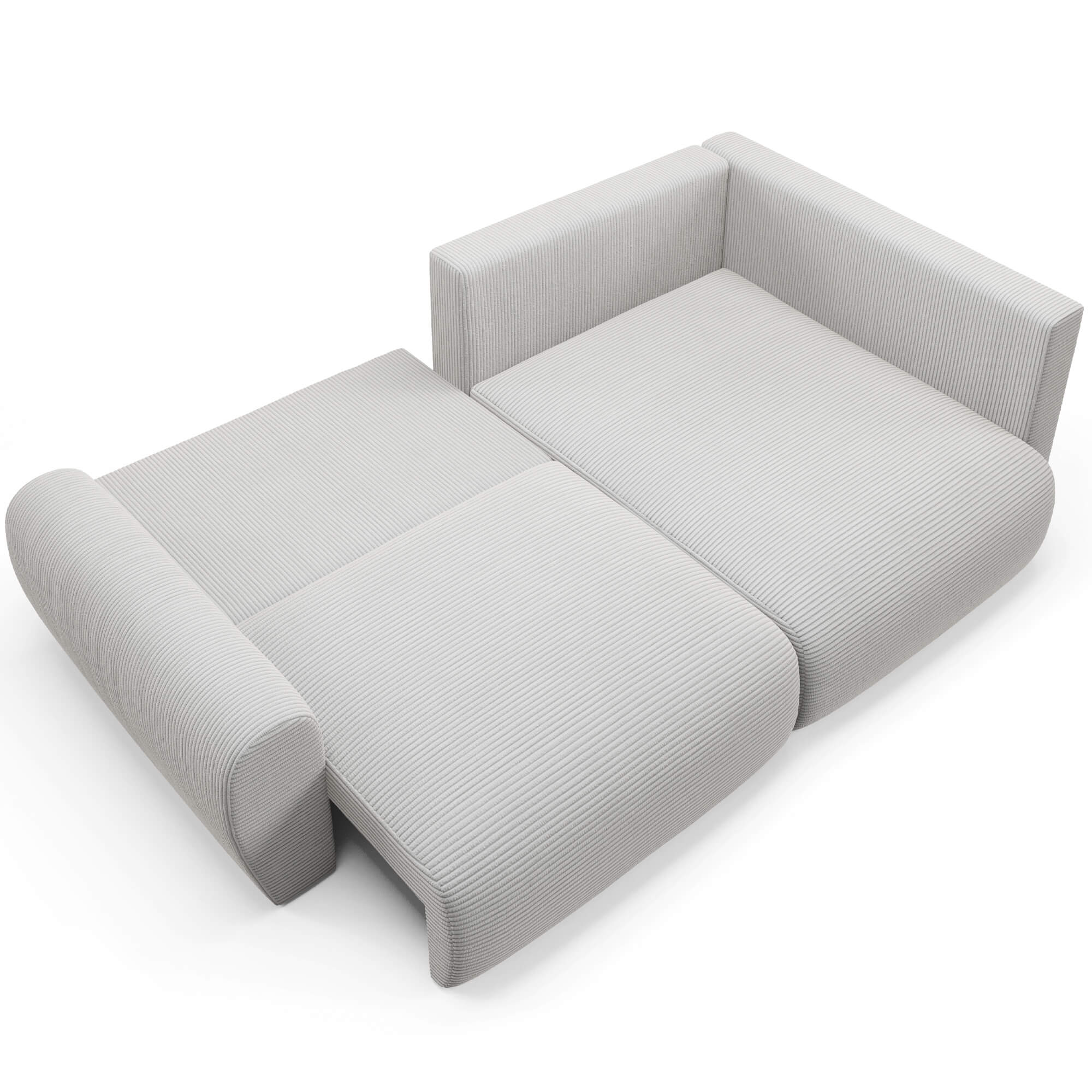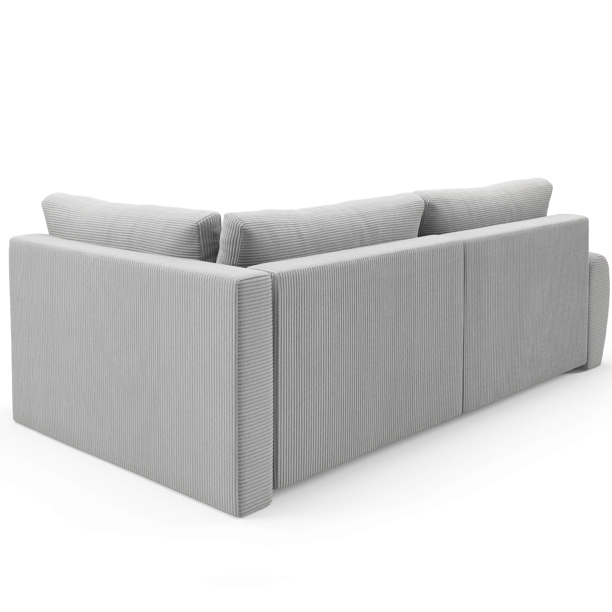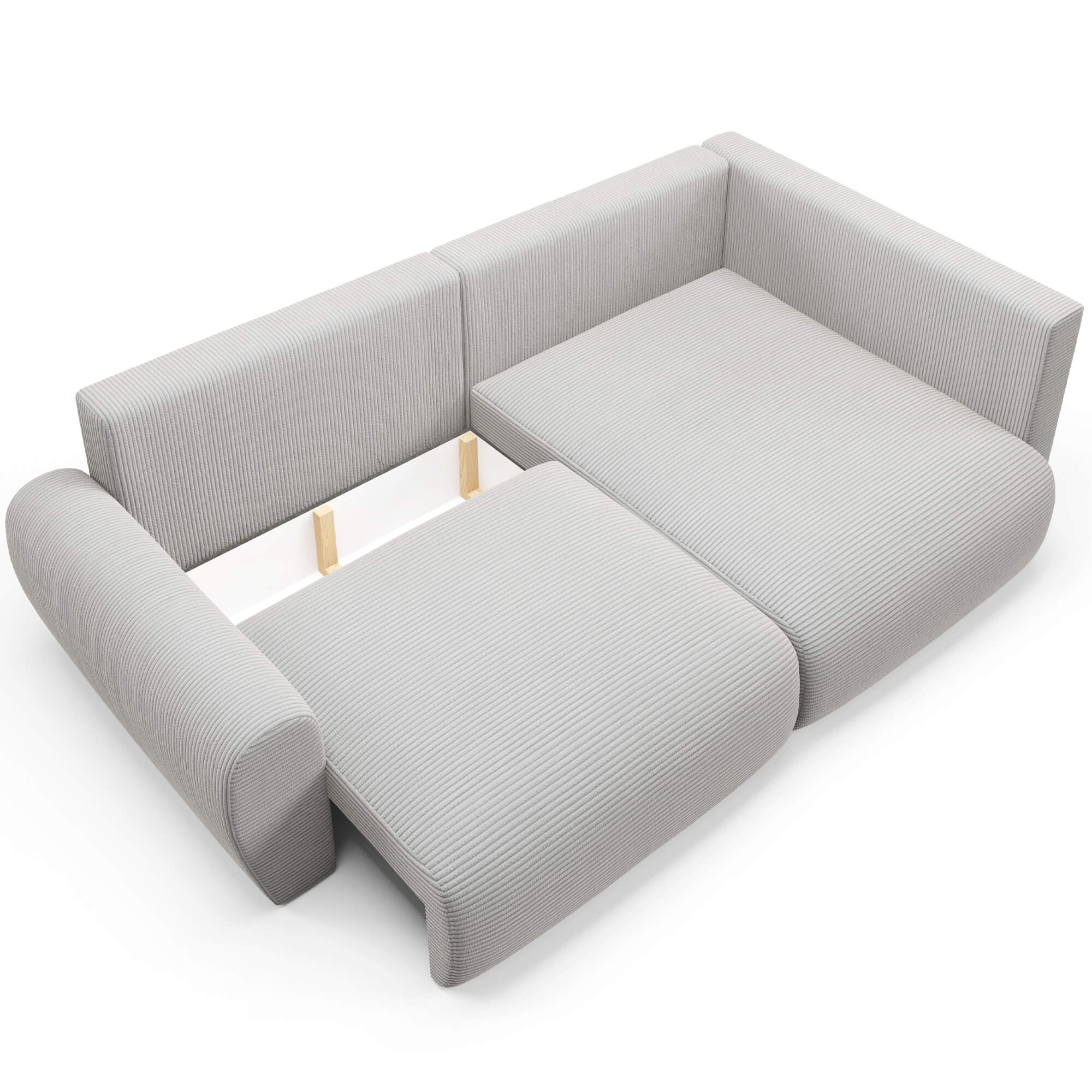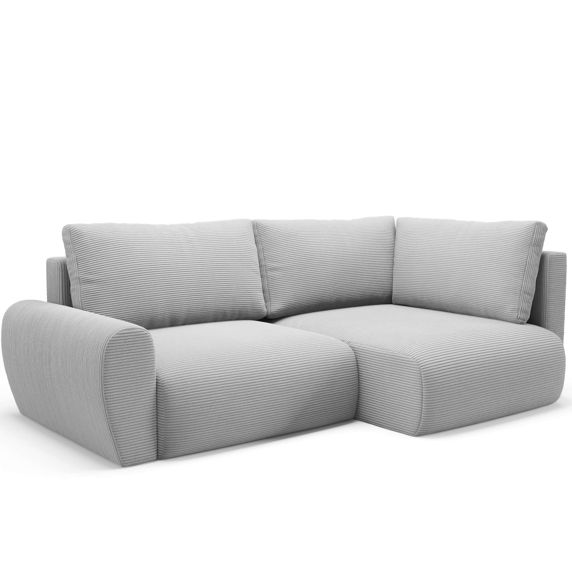 Narożnik L-kształtny MINI POSS szara tkanina sztruksowa z funkcją spania oraz pojemnikiem na pościel