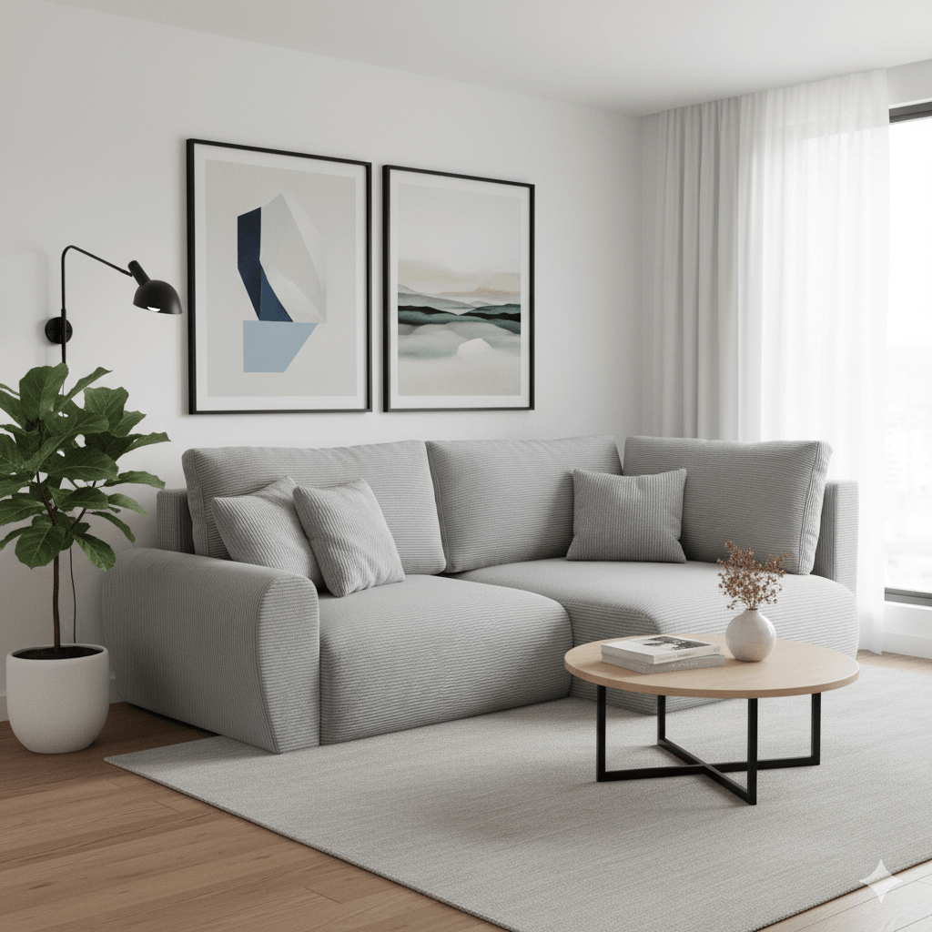 Tapicerka wykonana z szarej tkaniny sztruksowej POSO przyciąga wzrok swoim subtelnym, żebrowanym wzorem, który dodaje meblowi głębi oraz faktury. Tkanina ta jest nie tylko estetyczna, ale również wyjątkowo wytrzymała, co czyni narożnik POSS idealnym wyborem do codziennego użytkowania. Materiał sztruksowy w kolorze szarym jest uniwersalny, dzięki czemu POSS doskonale komponuje się z różnymi stylami aranżacji wnętrz – od minimalistycznych po bardziej klasyczne. Nic jednak nie stoi na przeszkodzie, aby wykonać ten mebel w innej tkaninie. Ich lista znajduje się na dole opisu