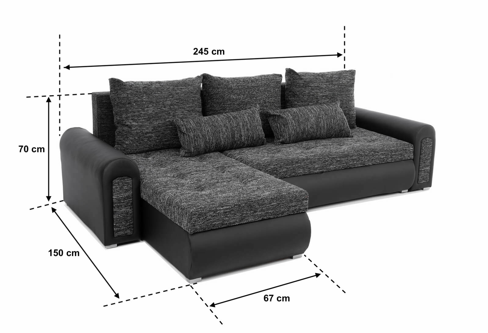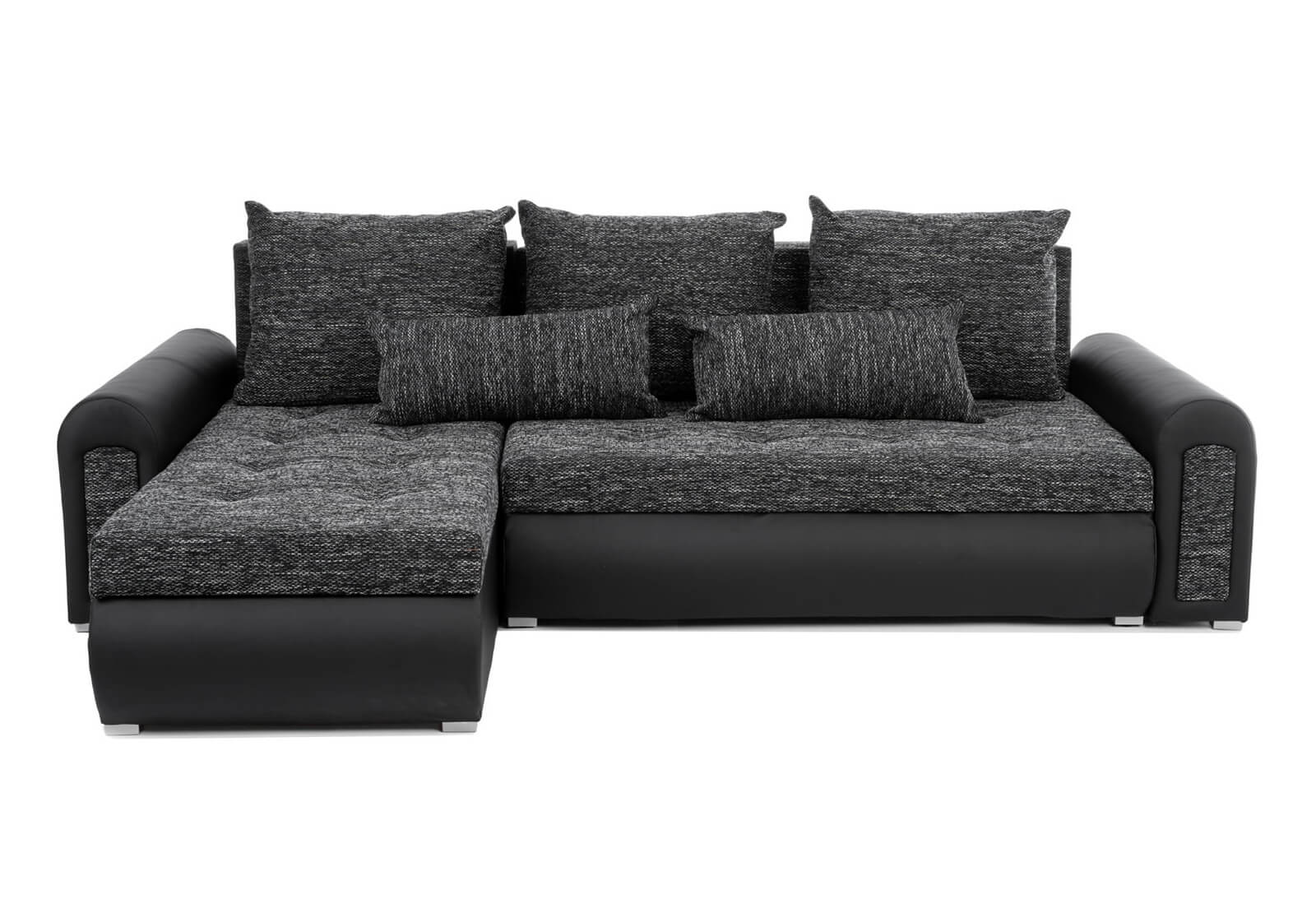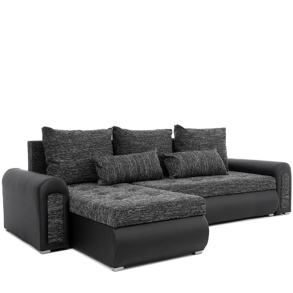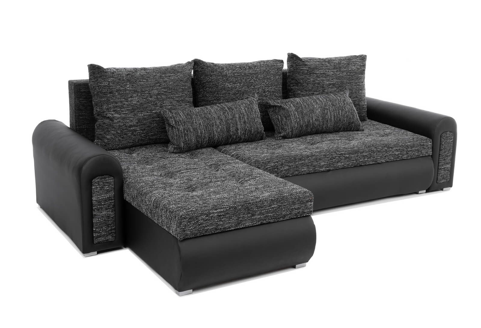 Narożnik L-kształtny RELAX szara tkanina plecionkowa + czarna ekoskóra z funkcją spania oraz pojemnikiem na pościel