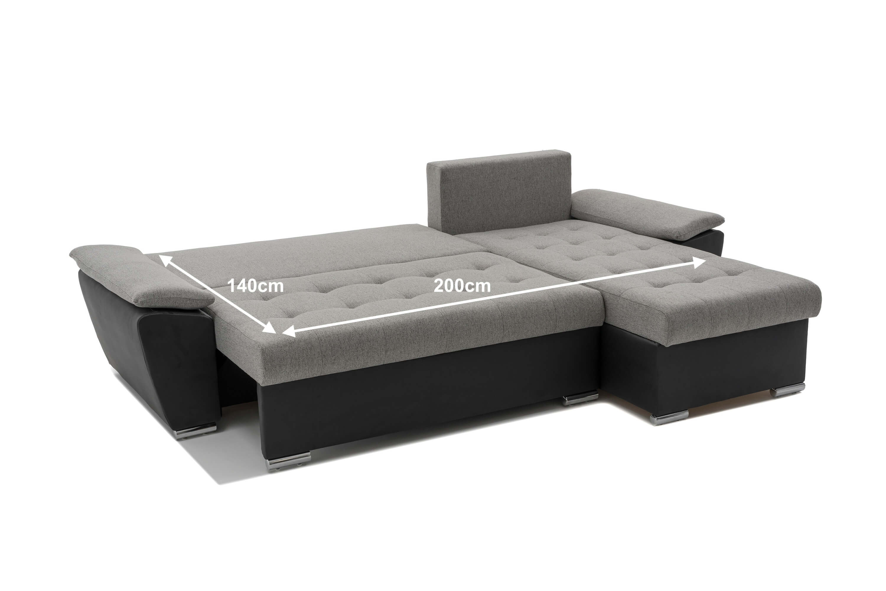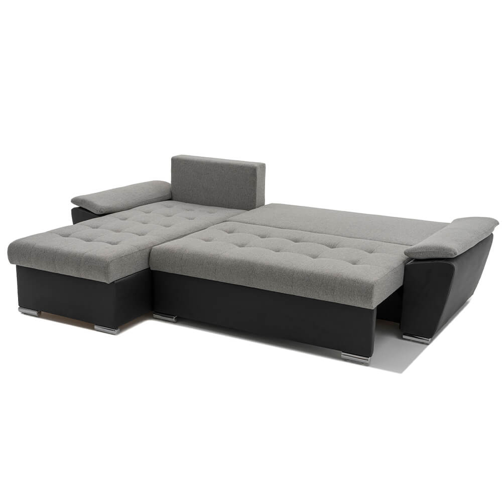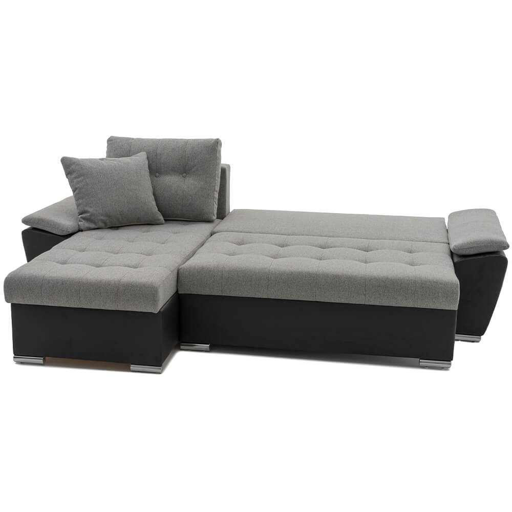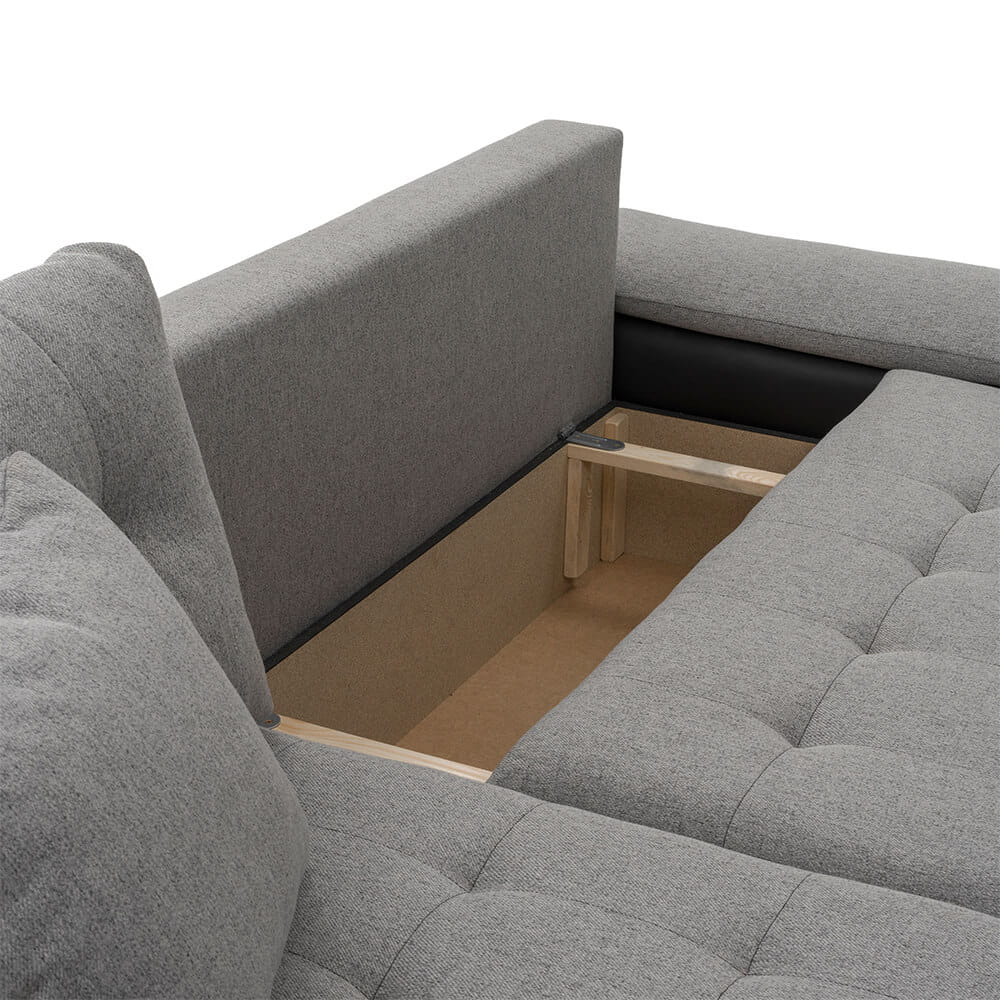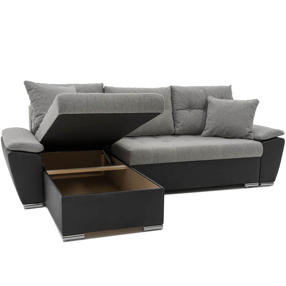 Narożnik L-kształtny VINCENT szary z funkcją spania oraz dwoma pojemnikami na pościel
