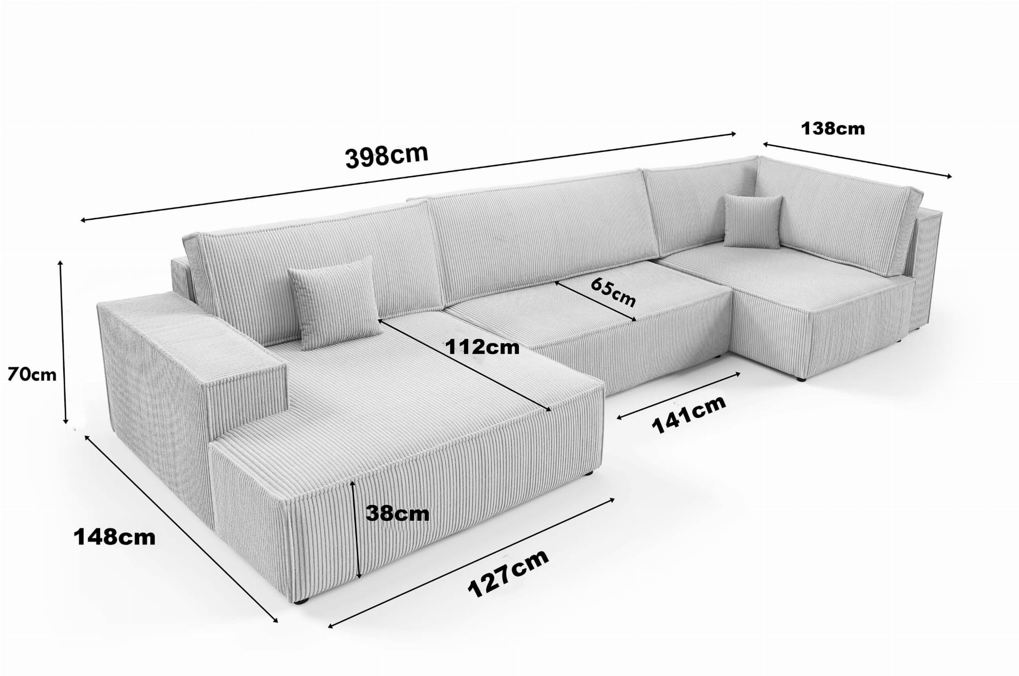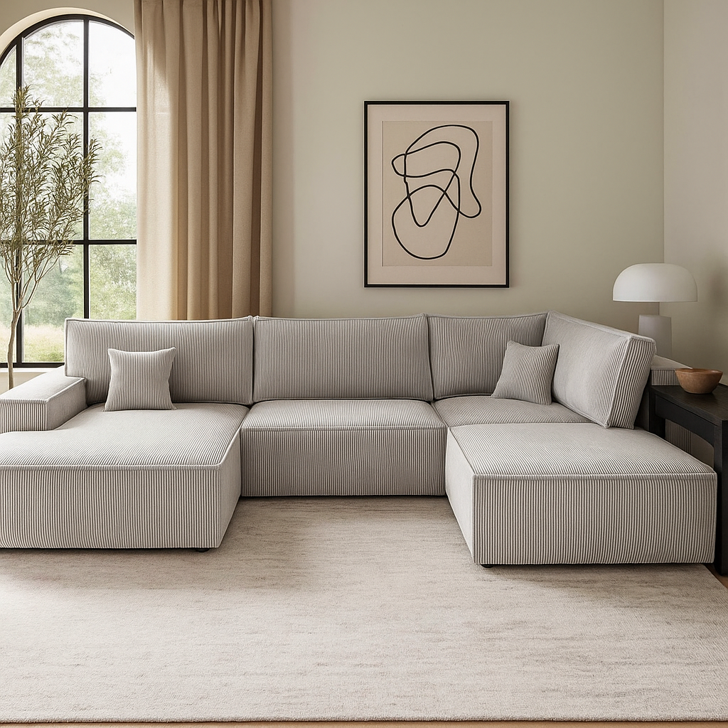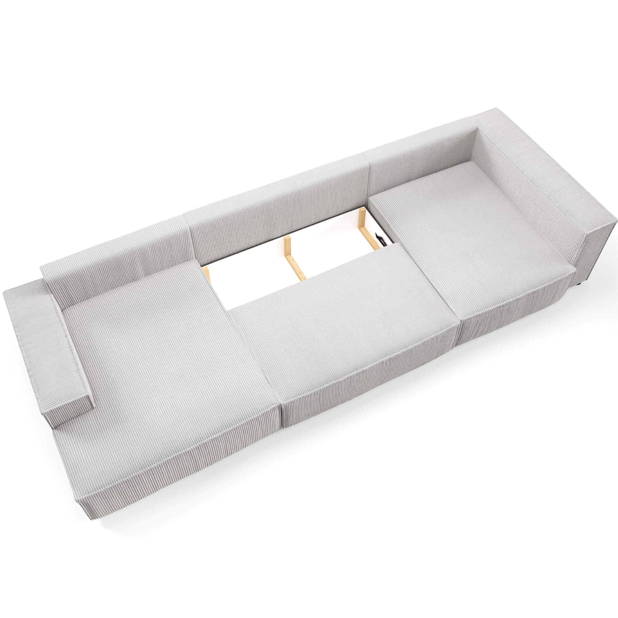 Narożnik U-kształtny AMATO XL szara tkanina sztruksowa z funkcją spania oraz pojemnikiem na pościel