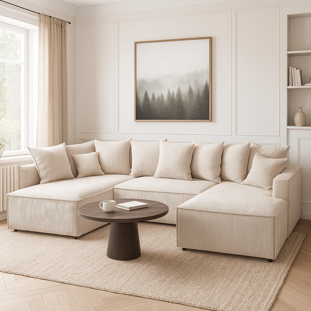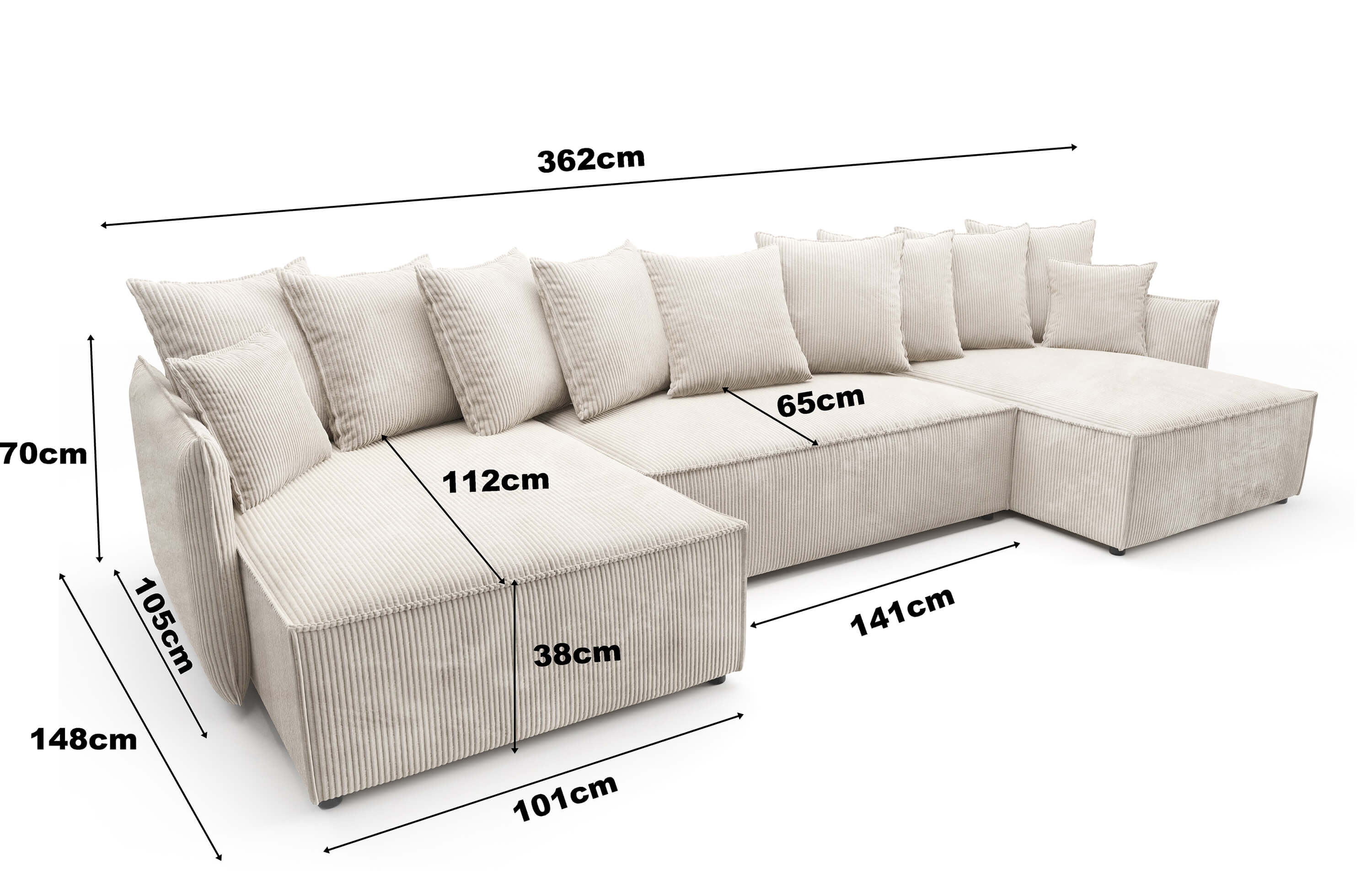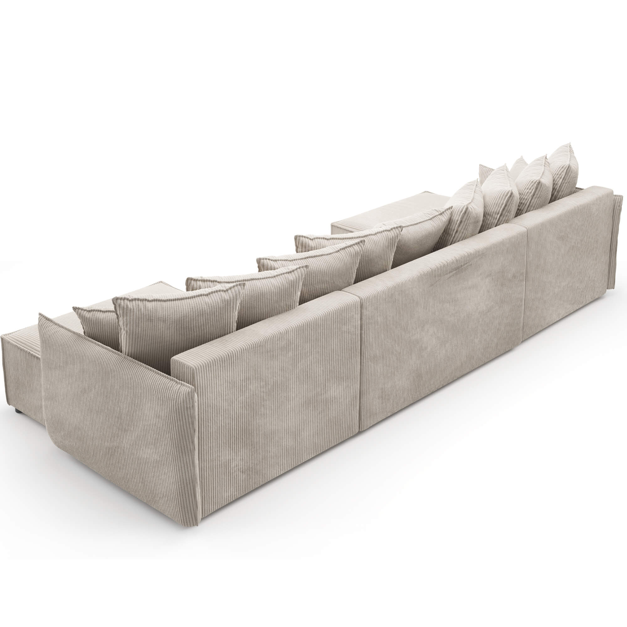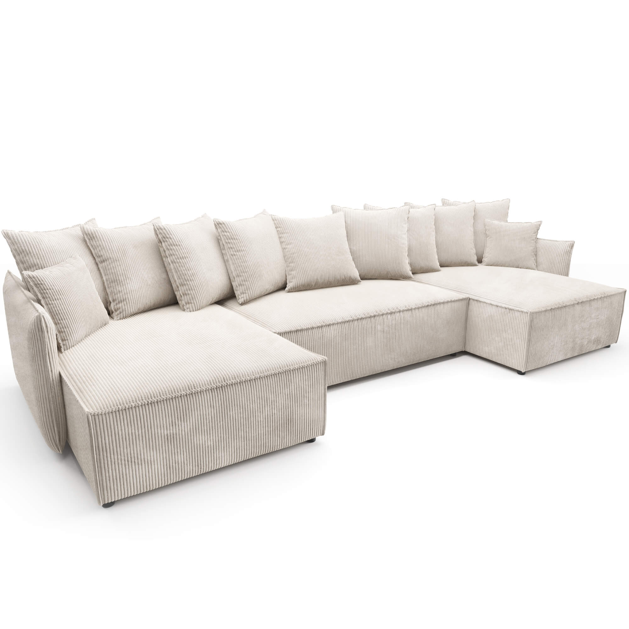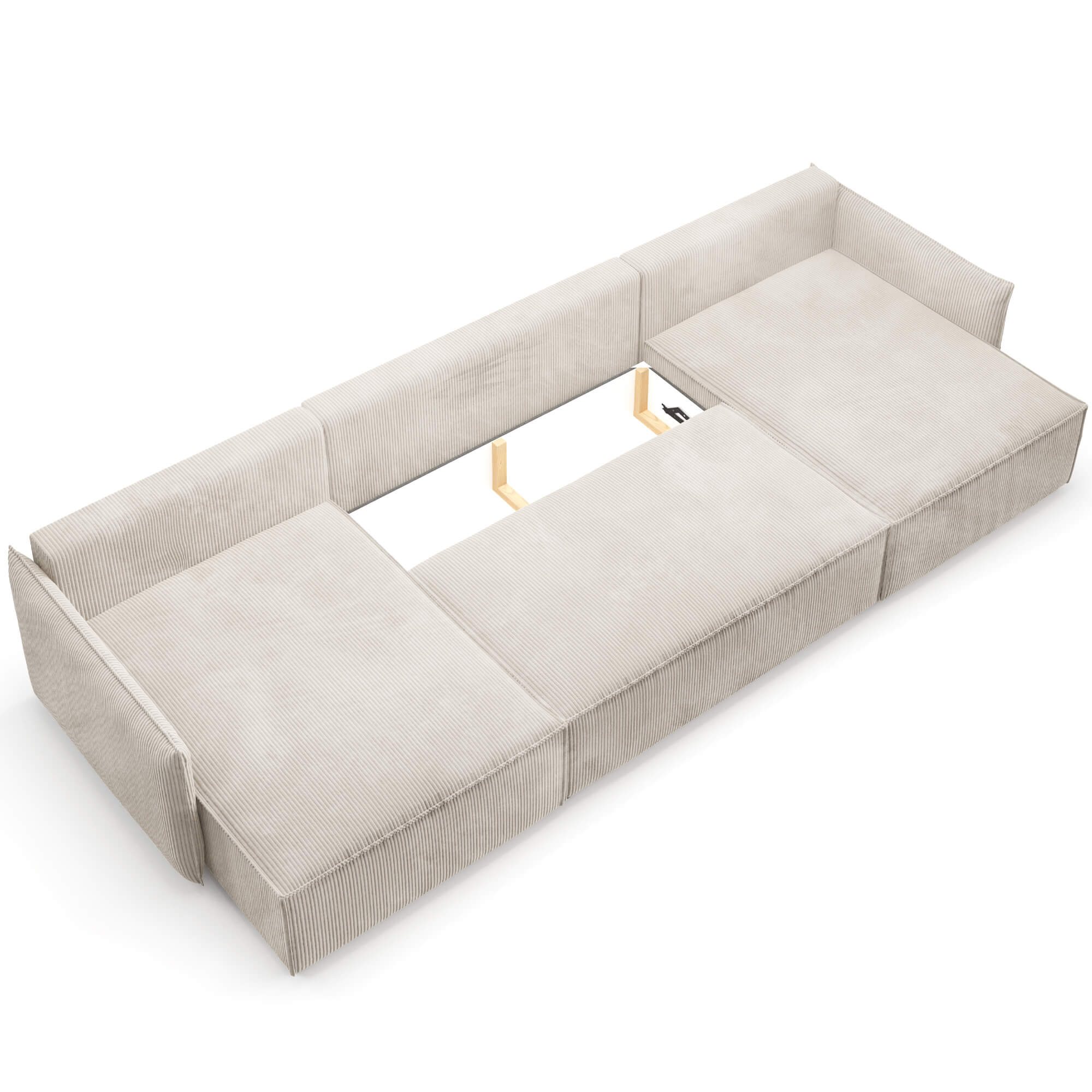 Narożnik U-kształtny BELLANTE beżowa tkanina sztruksowa z funkcją spania oraz pojemnikiem na pościel