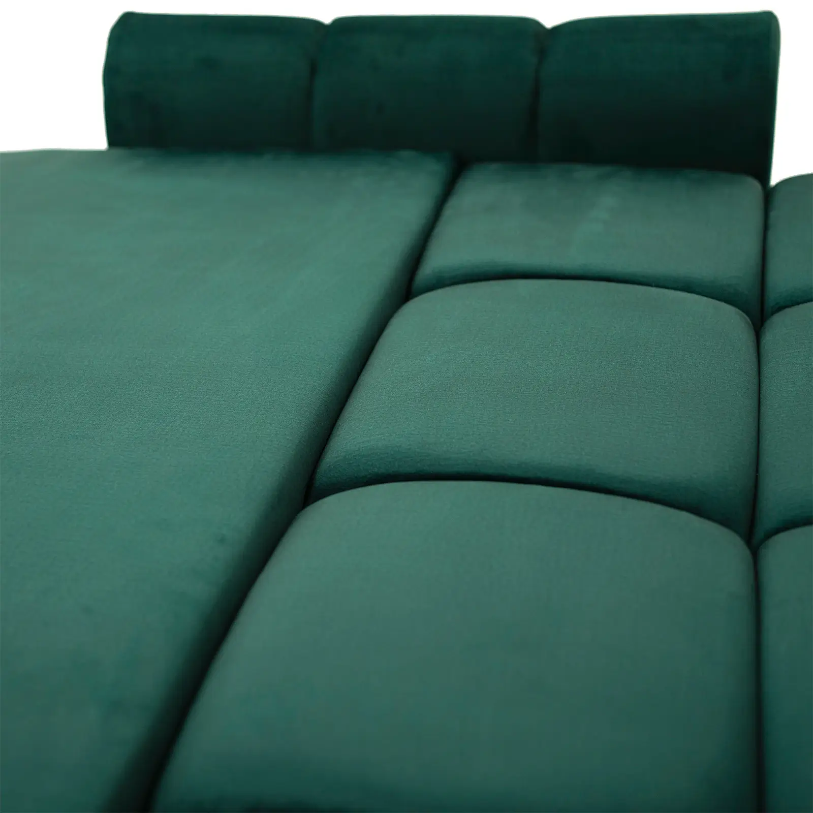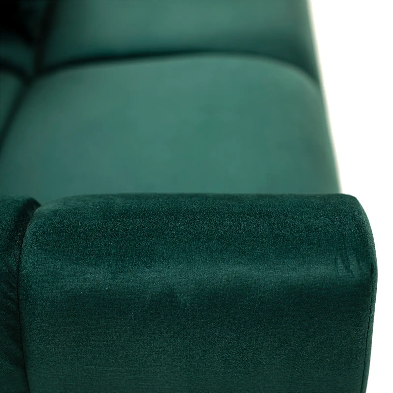 Wysokiej jakości materiał: Sofa została obita przepięknym zielonym welurem, który dodaje jej wyjątkowego charakteru i jest przyjemny w dotyku.