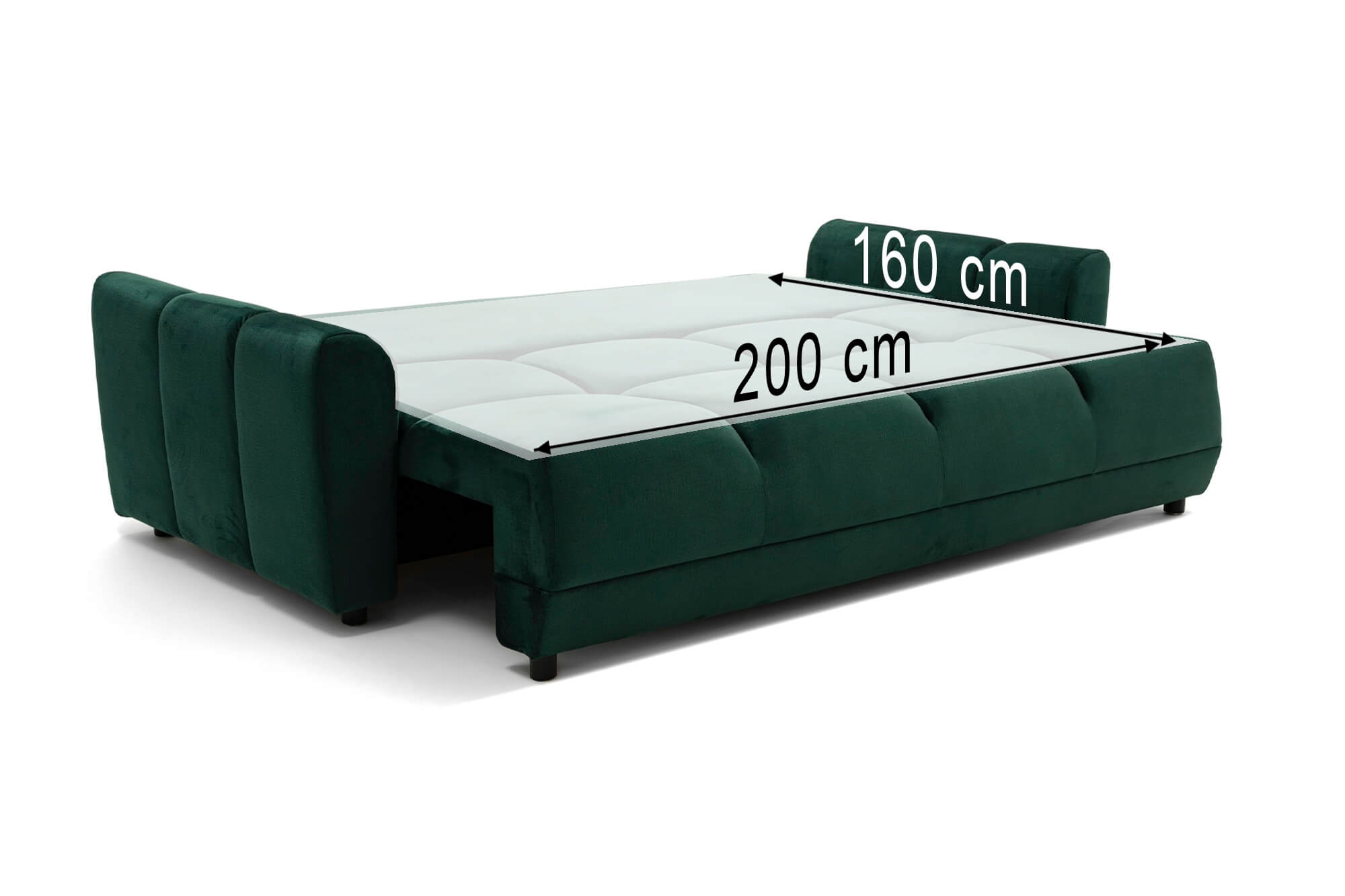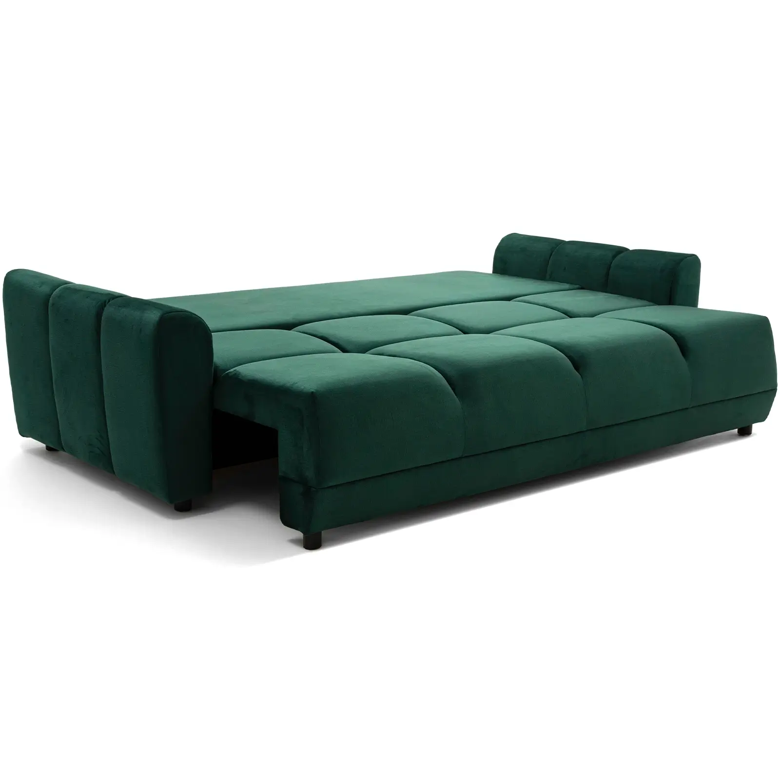 Sofa NAOMI 3 zielony welur z funkcją spania oraz pojemnikiem na pościel