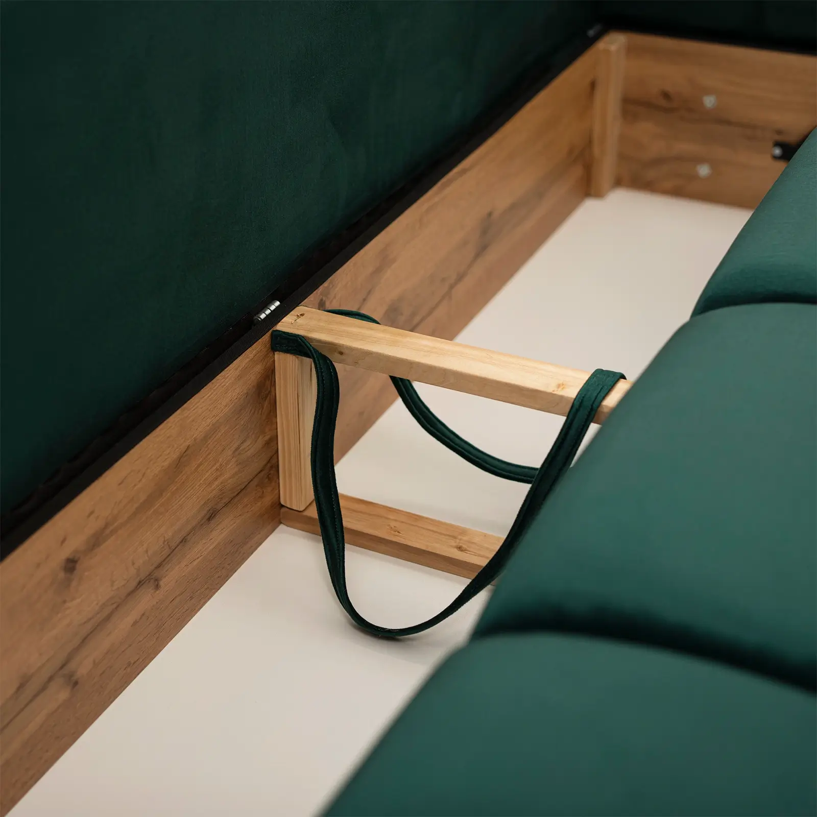 Pojemnik na pościel: Dzięki wbudowanemu pojemnikowi, zawsze będziecie mieli pod ręką dodatkową pościel czy koce, które można w nim przechowywać.