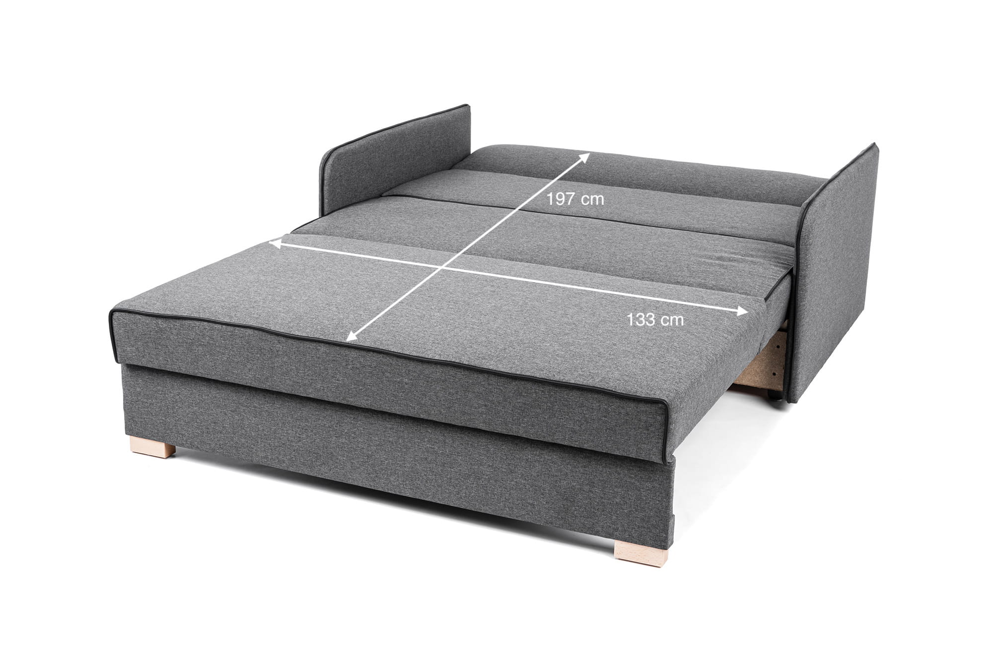 Sofa amerykanka Caro szara trzyosobowa z funkcją spania oraz pojemnikiem na pościel