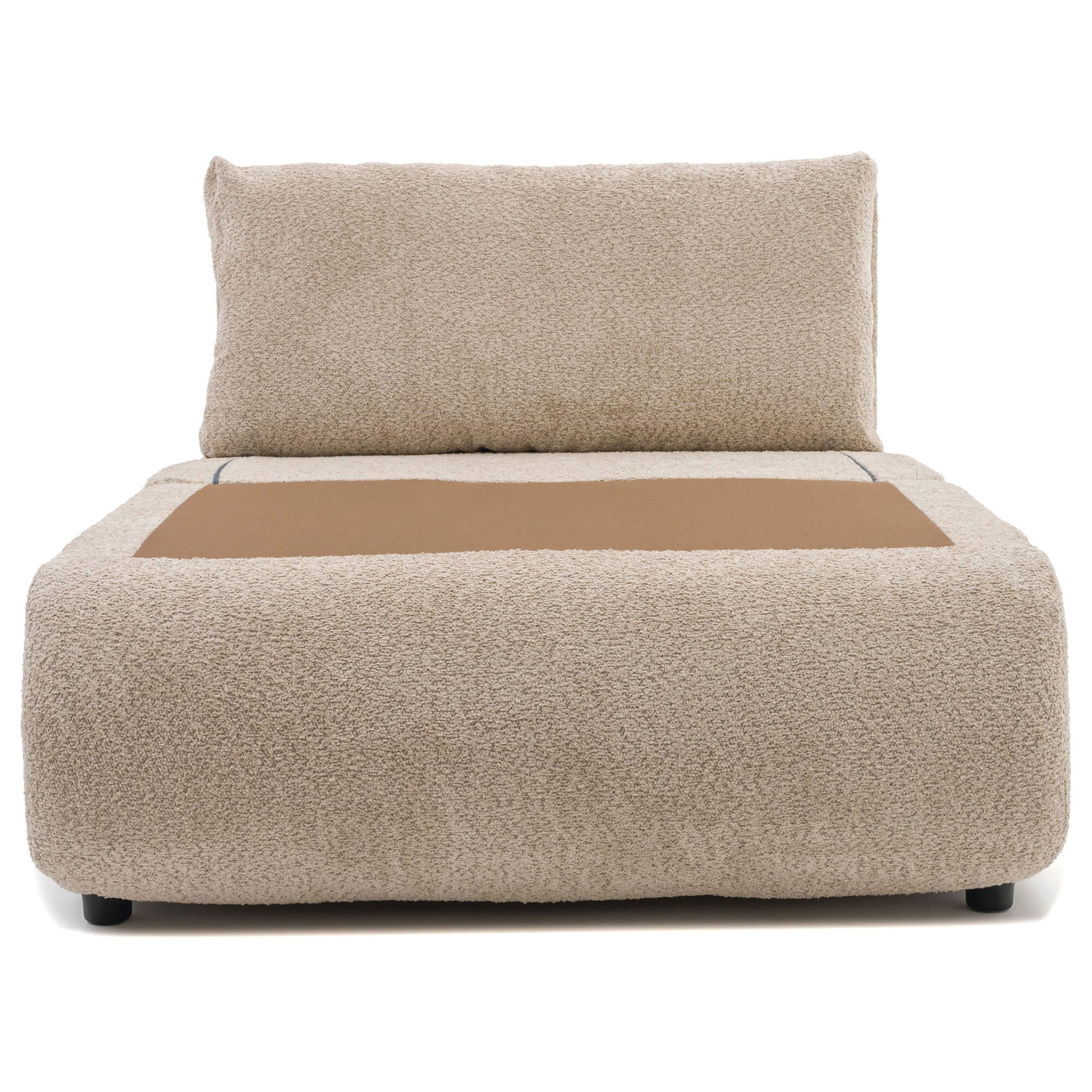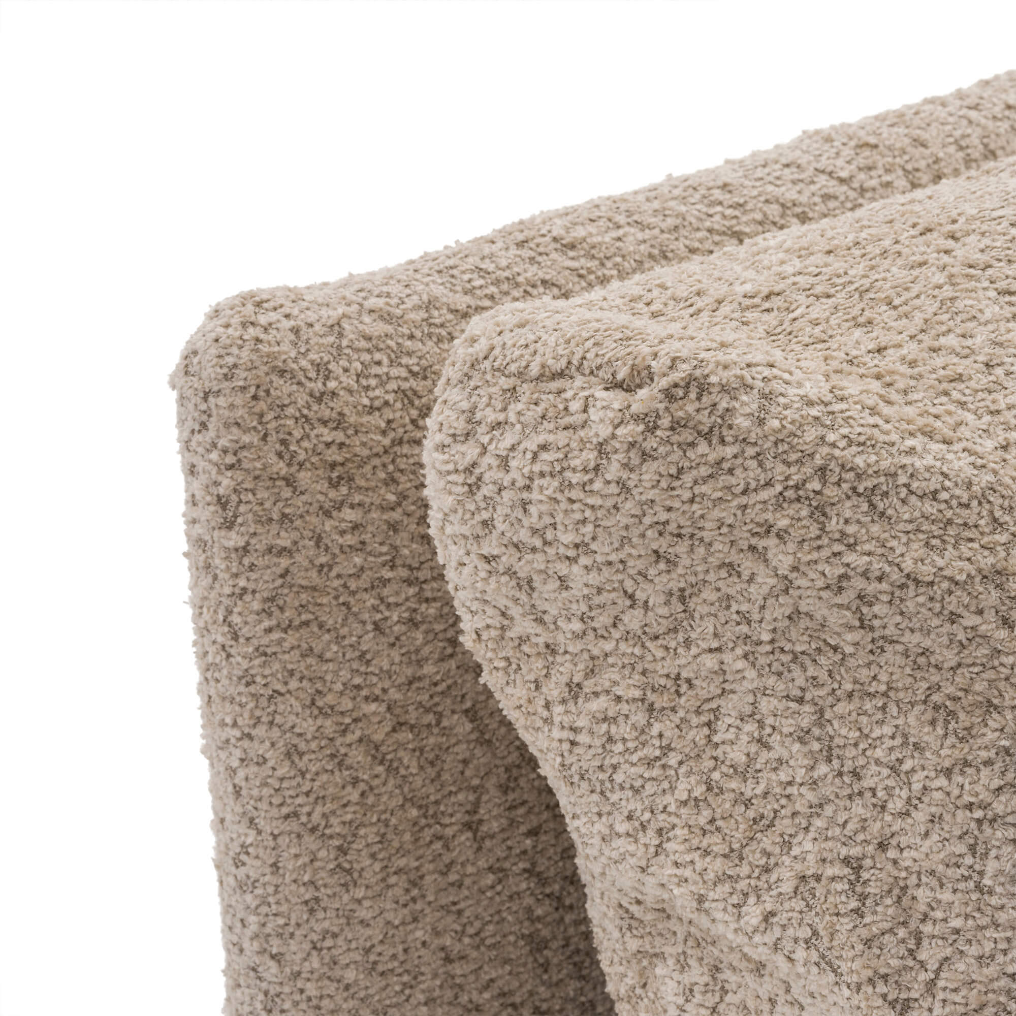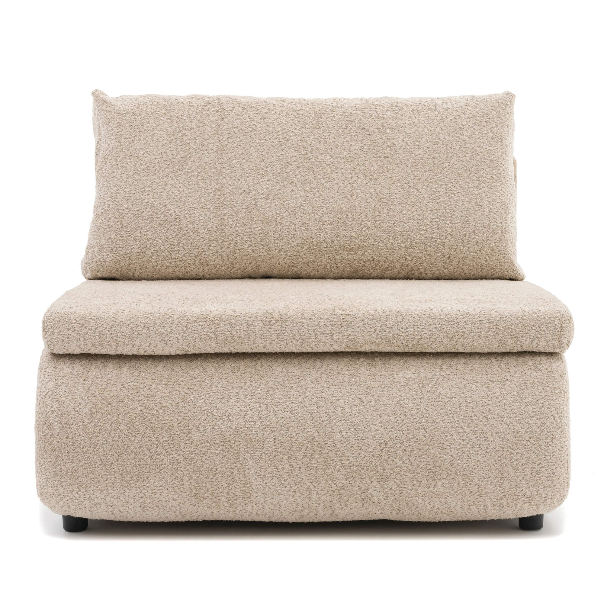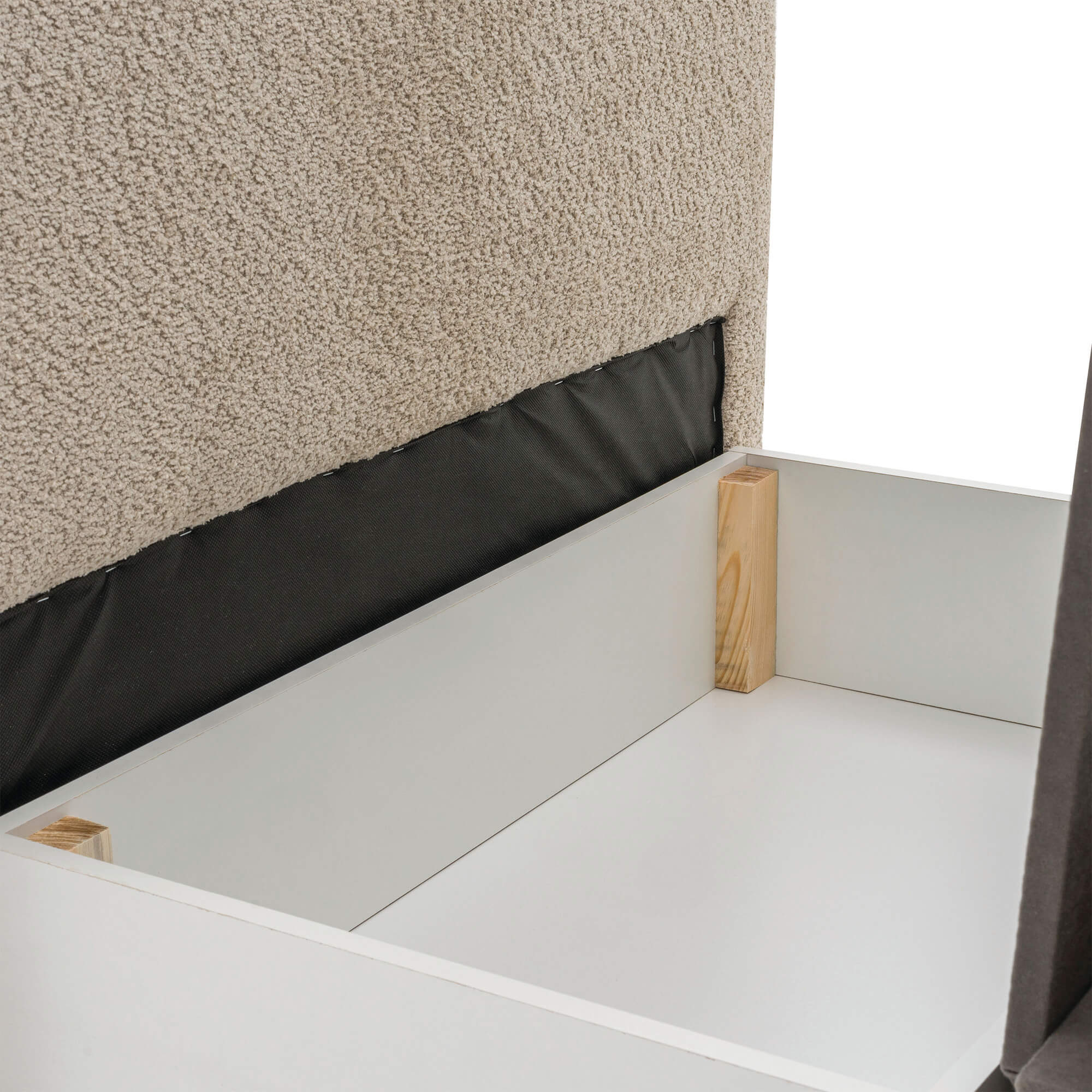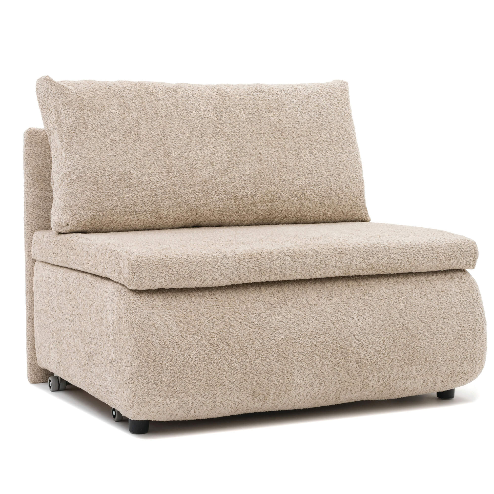 Sofa amerykanka Meg beżowa tkanina boucle jednoosobowa z funkcją spania oraz pojemnikiem na pościel