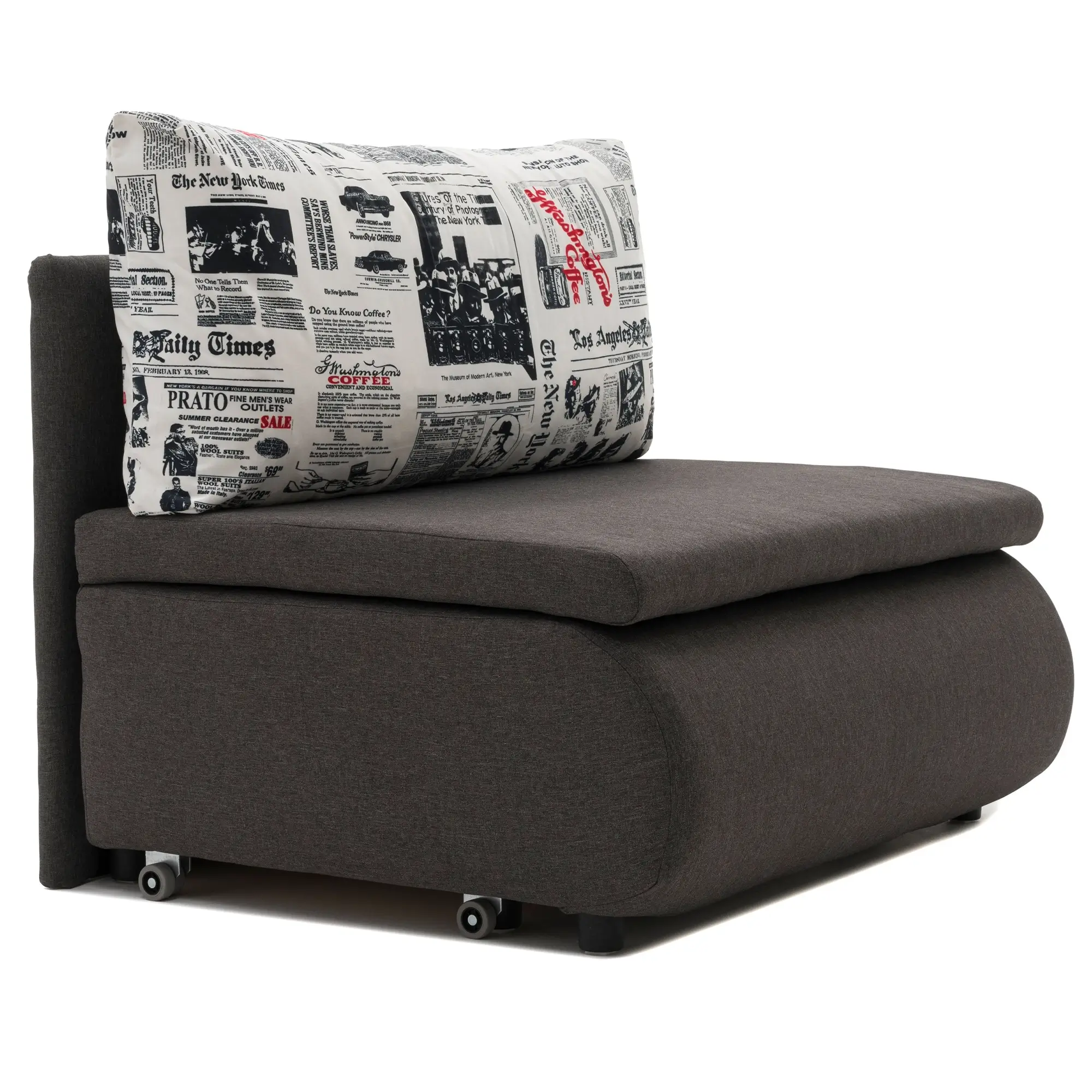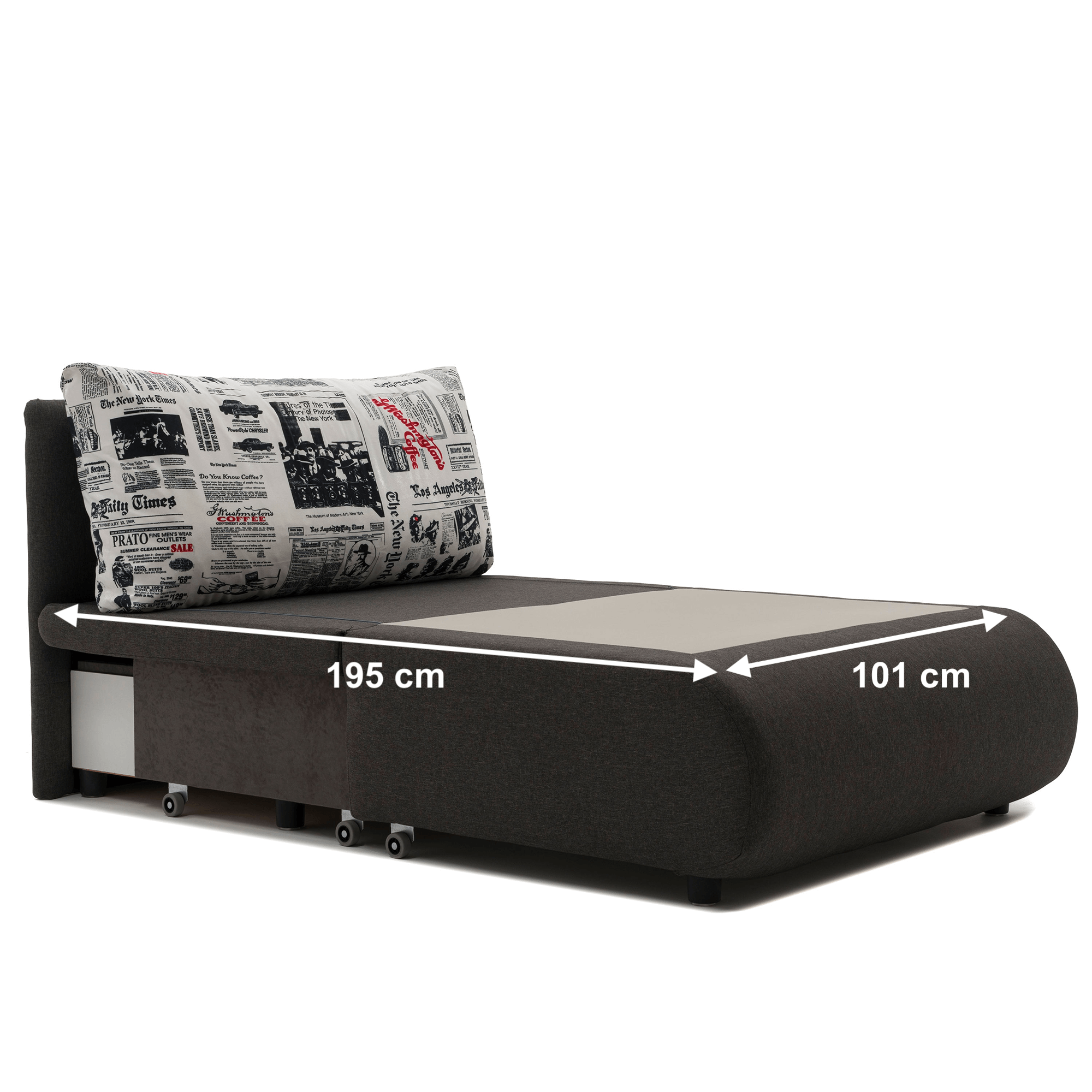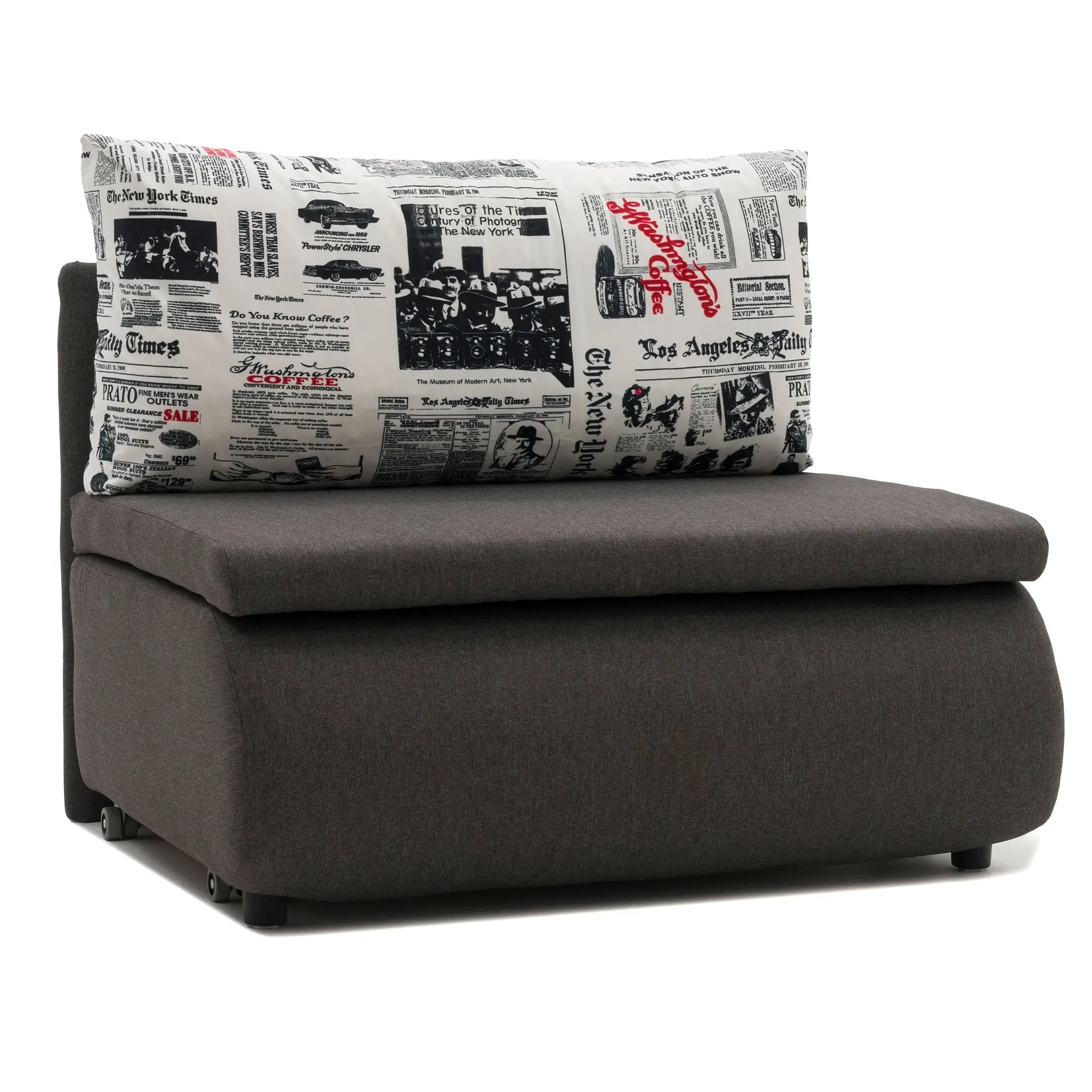 Sofa amerykanka Meg szara jednoosobowa z funkcją spania oraz pojemnikiem na pościel