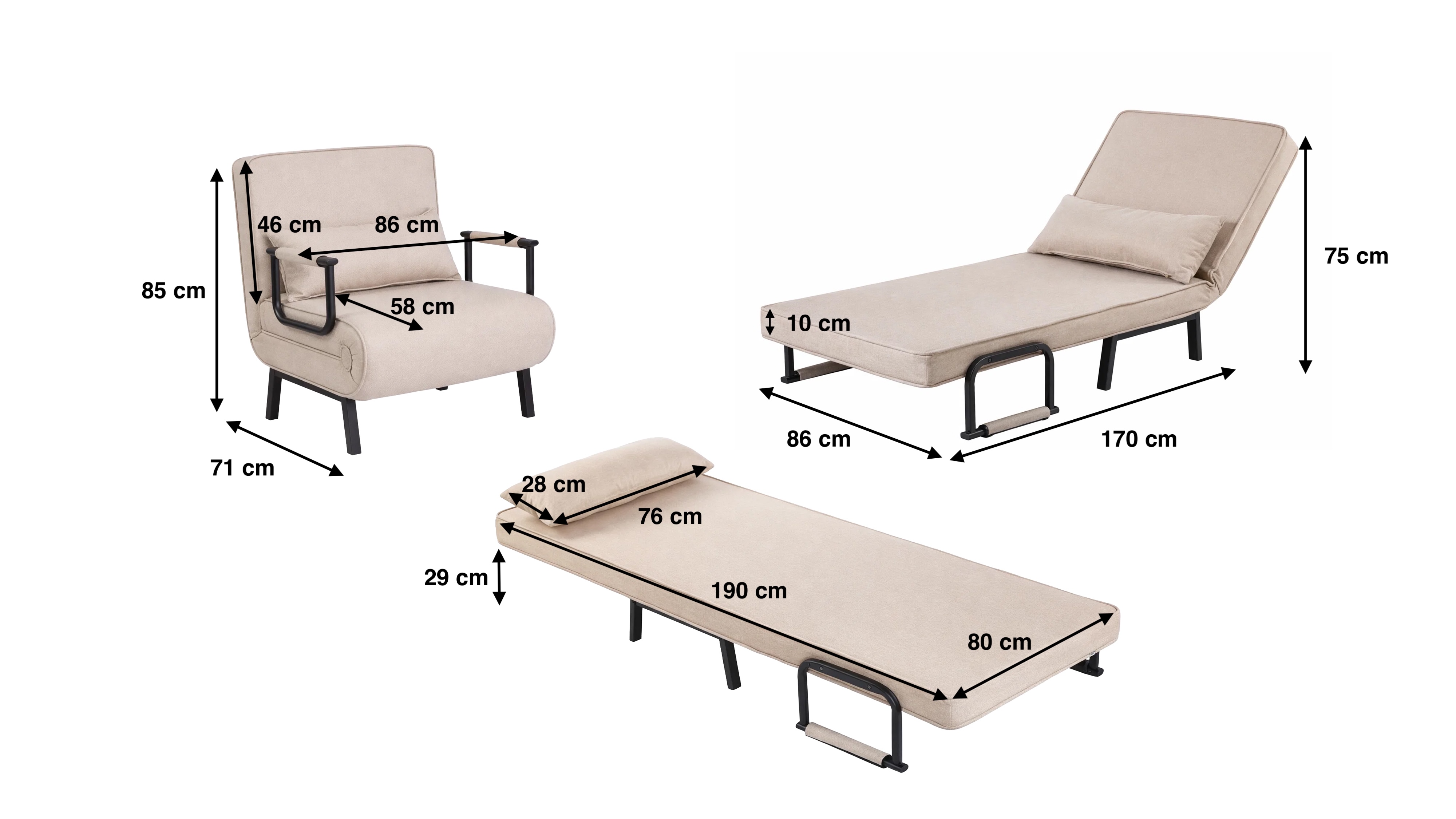 Doskonale sprawdzi się w salonie, pokoju młodzieżowym, biurze czy domku letniskowym – wszędzie tam, gdzie liczy się komfort i oszczędność miejsca.