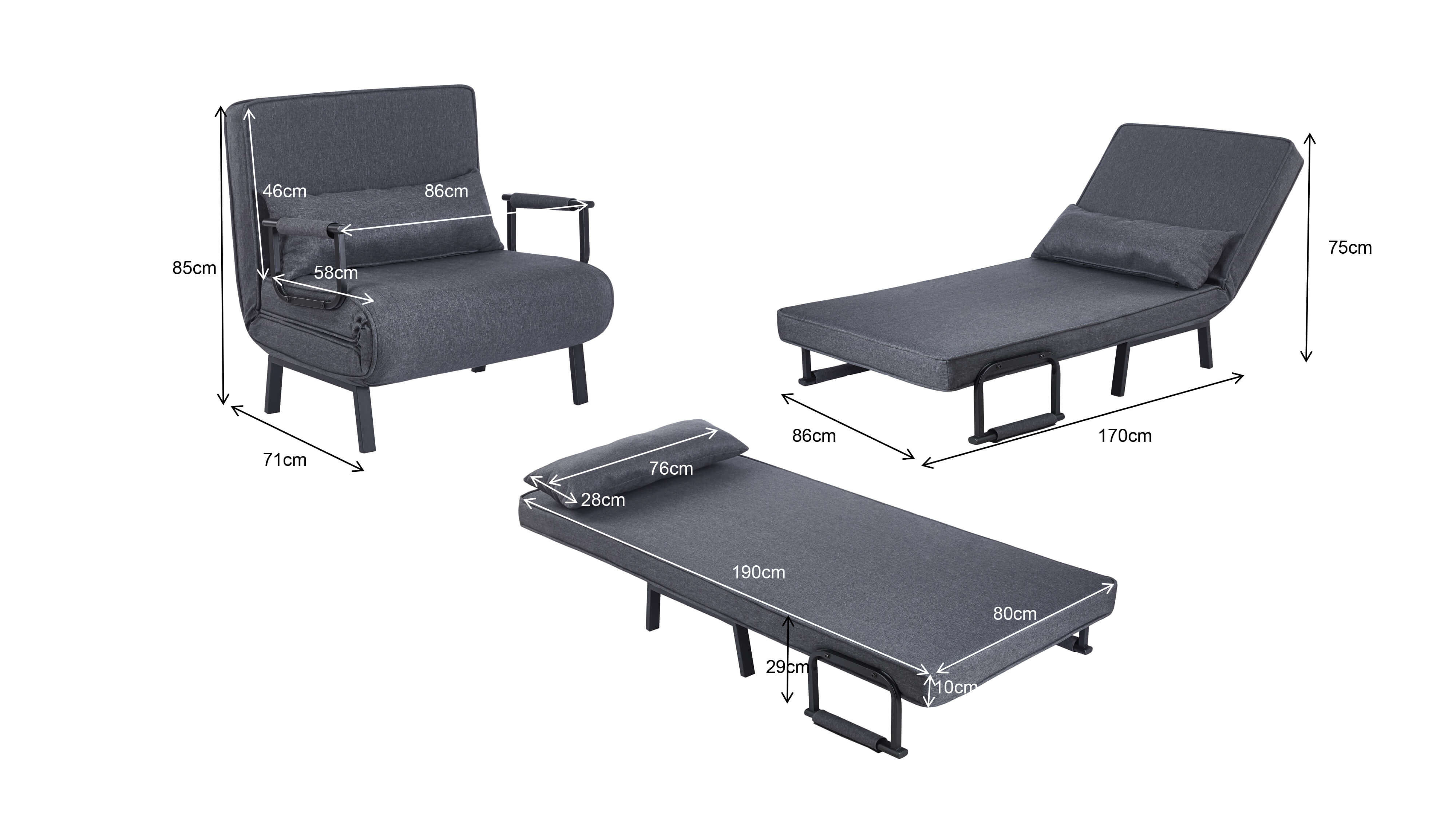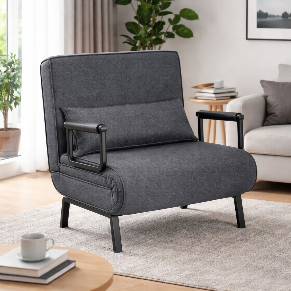 Doskonale sprawdzi się w salonie, pokoju młodzieżowym, biurze czy domku letniskowym – wszędzie tam, gdzie liczy się komfort i oszczędność miejsca.