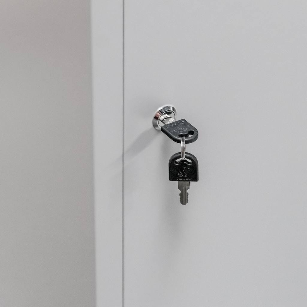 Zamek cylindryczny z kompletem dwóch kluczyków dba o bezpieczeństwo wyposażenia pracownika.