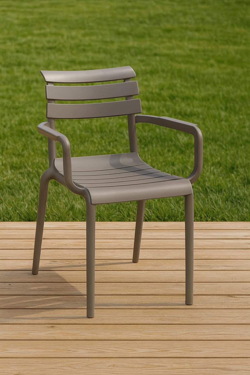 Krzesła SIMPLE zostały w całości odlewane z tworzywa sztucznego, co sprawia, że są wyjątkowo lekkie i łatwe w utrzymaniu czystości. Posiadają ergonomiczne podłokietniki oraz specjalnie profilowane oparcie, które zapewnia wysoki komfort siedzenia. Co więcej, krzesła są sztaplowane, co oznacza, że można je układać jedno na drugim, oszczędzając miejsce w przechowywaniu. Dzięki odporności na promieniowanie UV oraz zmienne warunki atmosferyczne, świetnie sprawdzą się na tarasie, w ogrodzie, na balkonie, a także w kawiarniach i restauracjach.